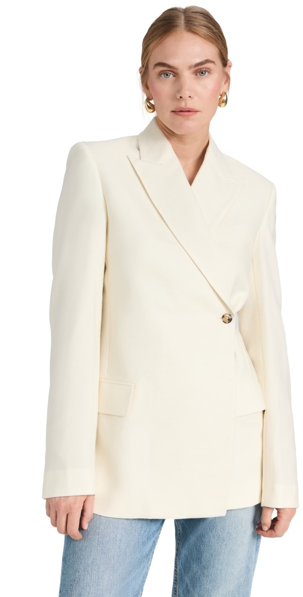 Fabric: Mid-weight, non-stretch twill suiting. Padded shoulders. Single back vent. Collared neck with peaked lapels. Long sleeves with button cuffs. Double-breasted button placket. Welt front pockets. Shell: 98% wool/2% elastane. Lining: 100% cupro. Dry clean. Imported, China. Measurements: Measurements from size 2 Length: 30.75in / 78.0cm, from shoulder