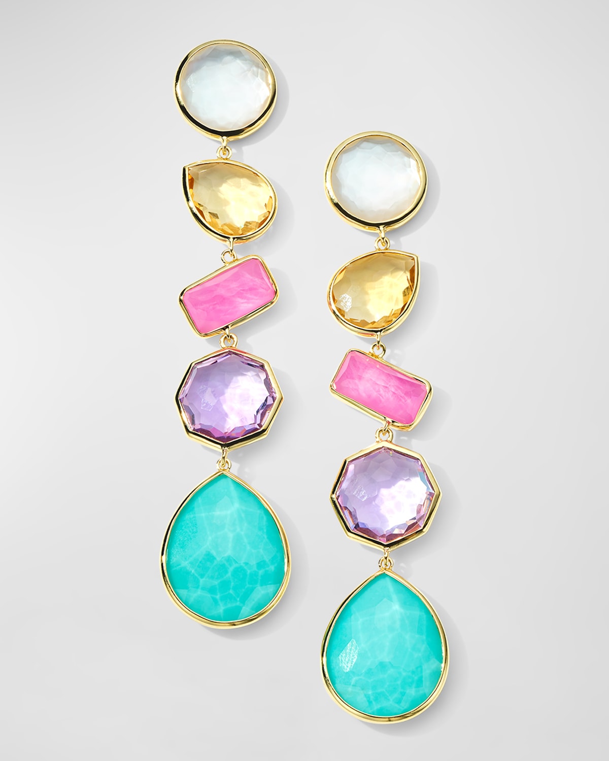 18K Rock Candy Large 5-Stone Linear Post Earrings in Summer Rainbow 2 Version A