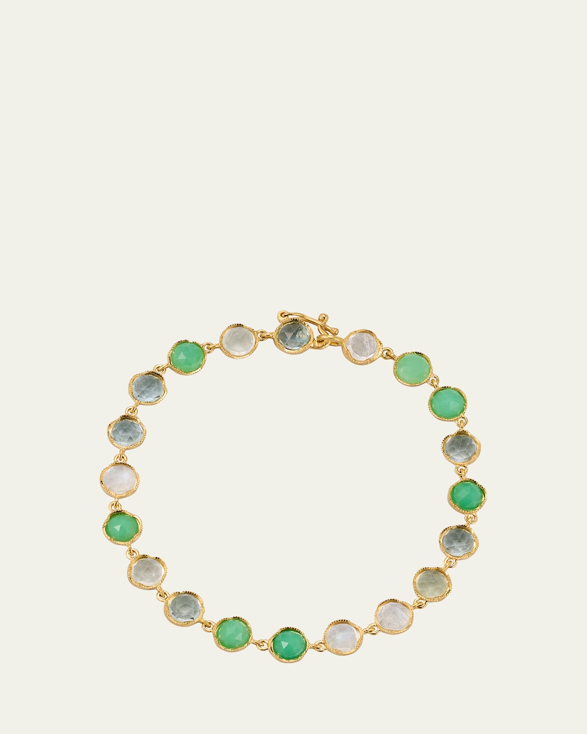 18K Yellow Gold Chrysoprase, Aquamarine and Rainbow Moonstone Bracelet