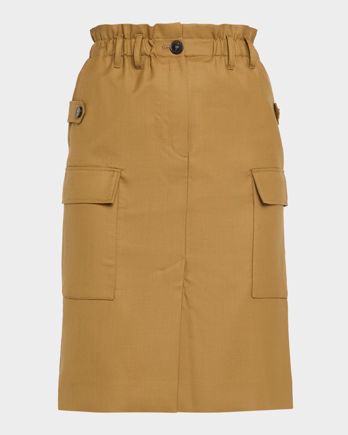 Merging cargoinspired functionality with tailored refinement, the Iro "Carrie" skirt redefines structured chicness Natural rise Beltlooped, elasticized waist Buttontabbed sides Cargo side pockets Back welt pockets Skirt falls straight from hip to hem Knee length with center slit Button/zip closure Virgin wool Made in Bulgaria