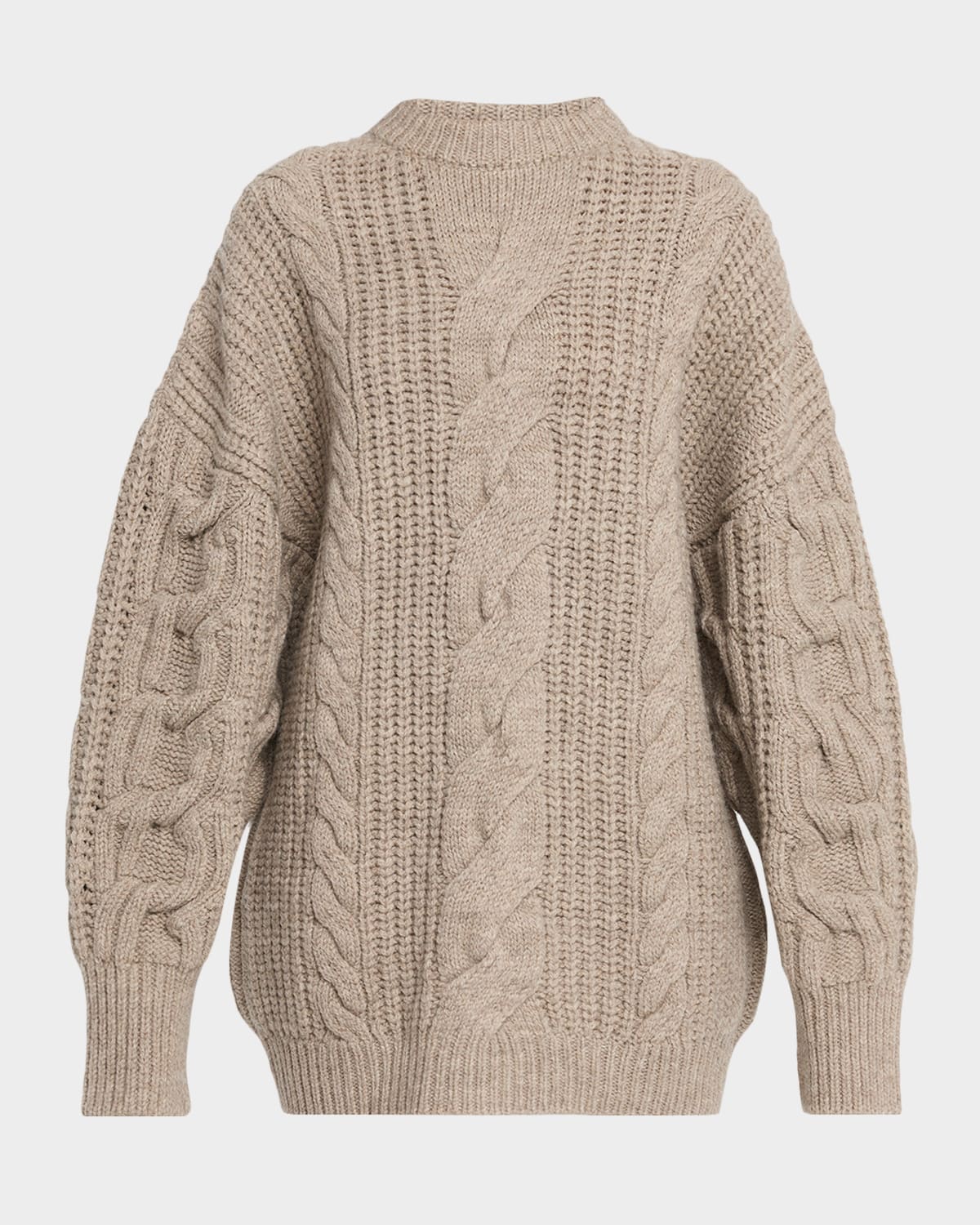 Iro "Gweena" sweater is a roomy cableknit in soft virgin wool, delivering ultimate cozy comfort with an everyday appeal Crew neckline Long, dropped sleeves Oversized, loose fit Hem hits the thigh Pullover style Merino wool Made in Peru