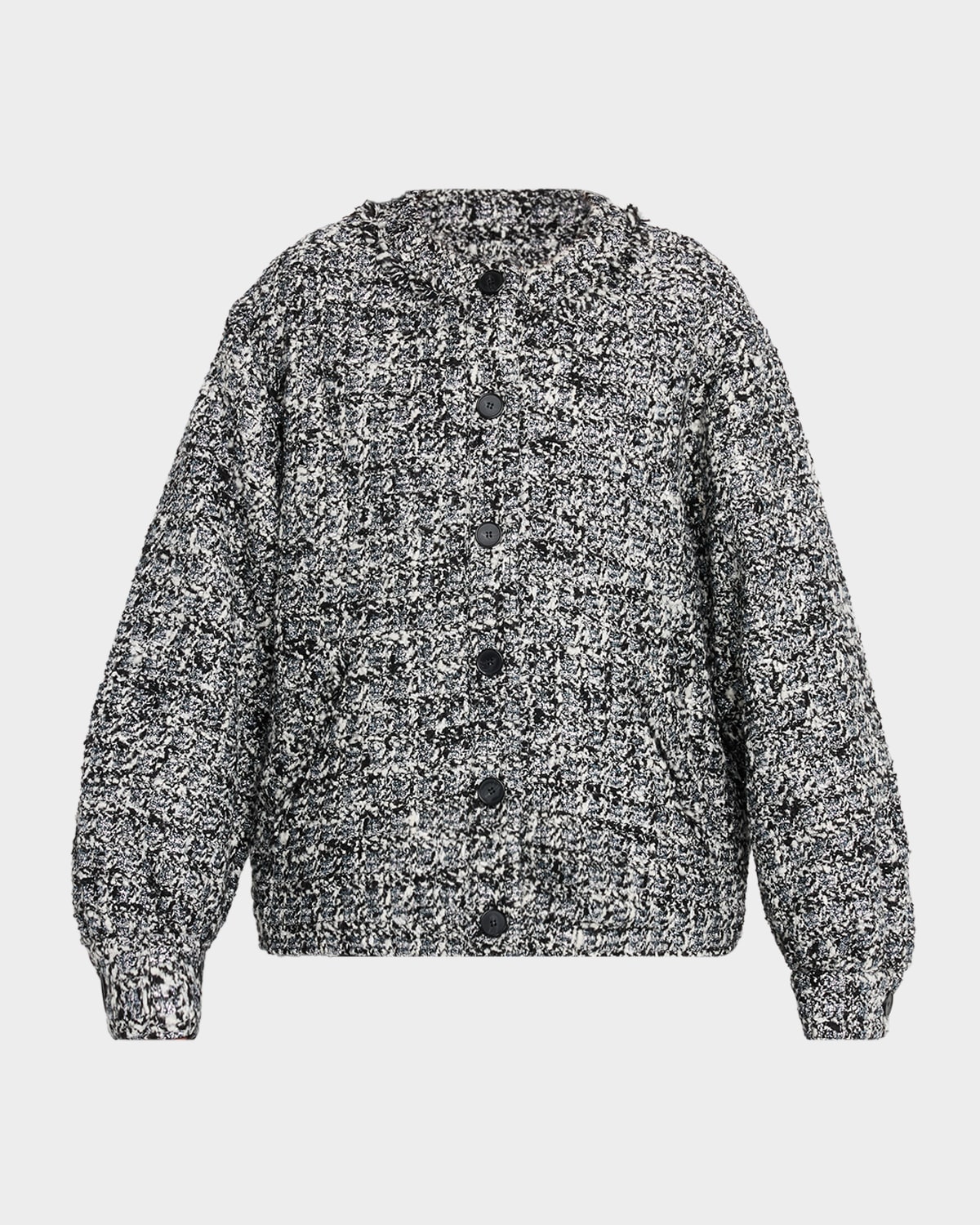 The Iro tweed bomber jacket "Hassia," adorned with fringe, adds a touch of textural elegance and untailored ease to any look Round neckline trimmed in fringe Buttonthrough front Long sleeves; button cuffs Angled side pockets trimmed in fringe Hem hits the hip Oversized fit Nylon/wool/cotton Made in Poland