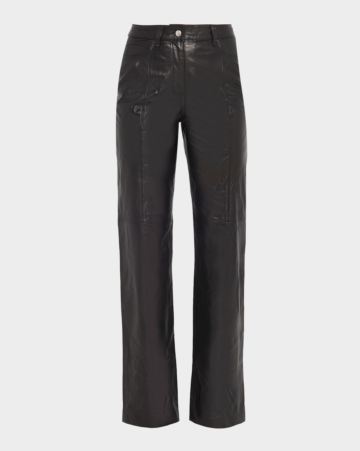 An elevated wardrobe staple, the "Kings" pants by Iro are crafted from partially lined, luscious lambskin leather High rise Fivepocket style Full length Straight legs Button/zip fly; belt loops Leather Imported