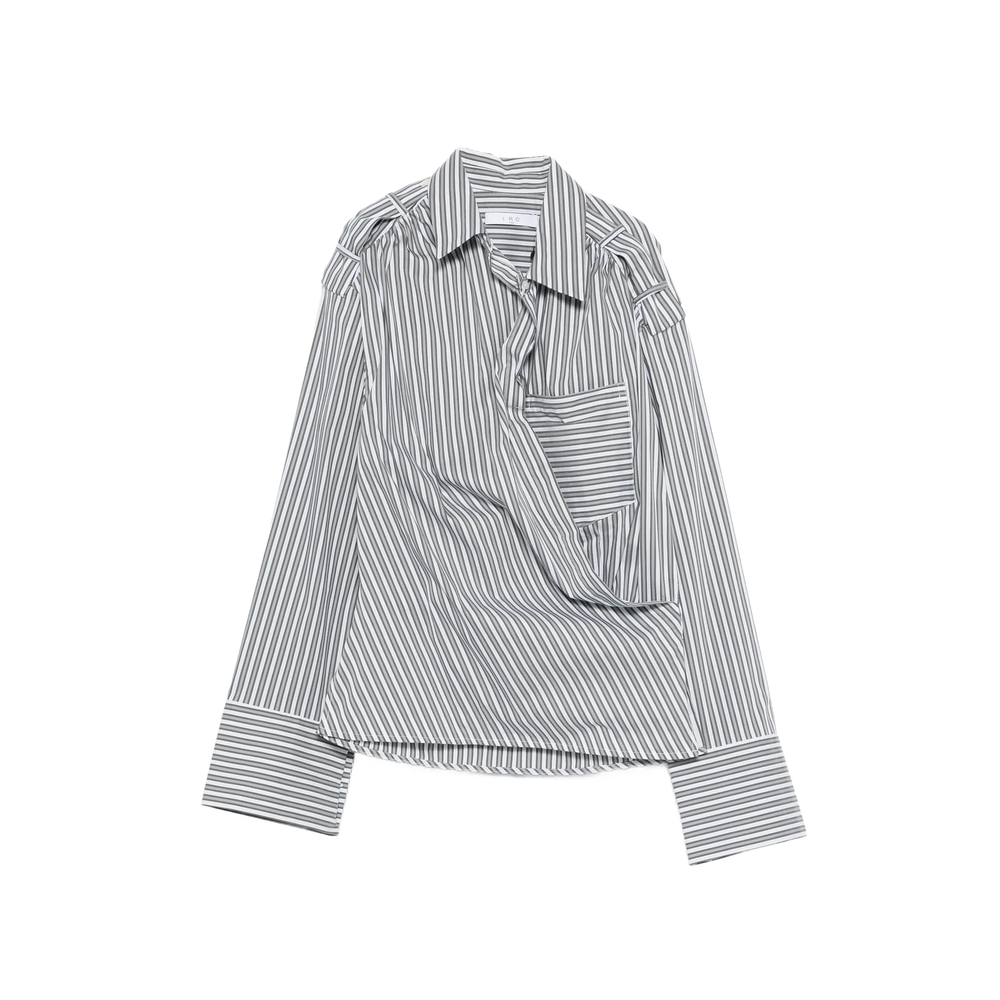 blue/white/grey stripe pattern patch pocket long sleeves button fastening