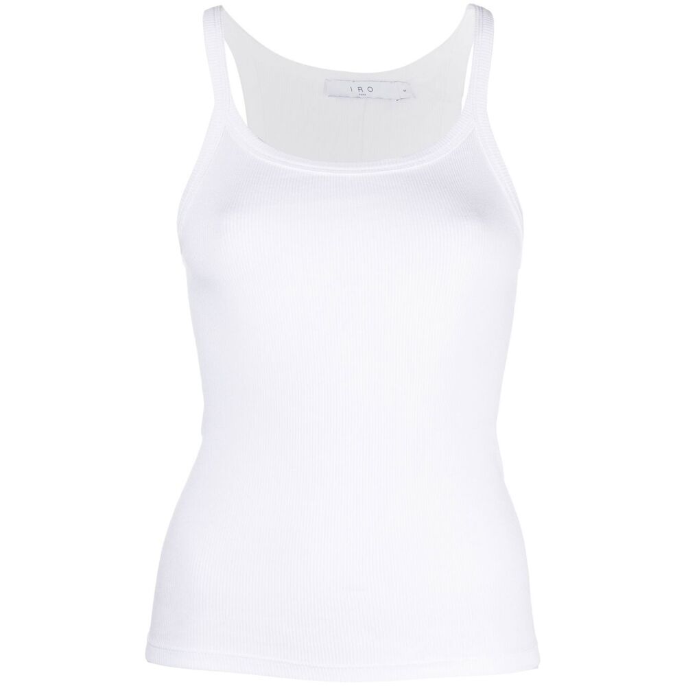 white stretch-cotton fine ribbed scoop neck spaghetti straps straight hem