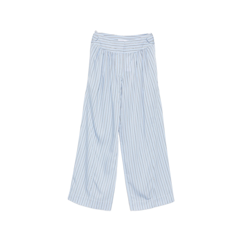 light blue striped belt loops pleated wide leg high-waisted