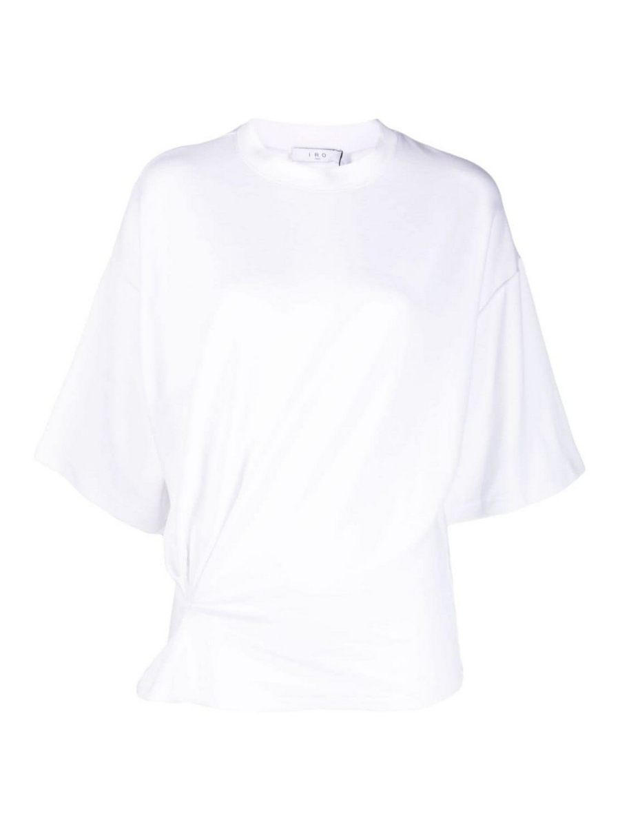 T-shirt Garcia plissé signé Iro orné de détails en tencel blanc et coton mélangés avec plis, encolure ronde, épaules tombantes, manches courtes et ourlet droit.