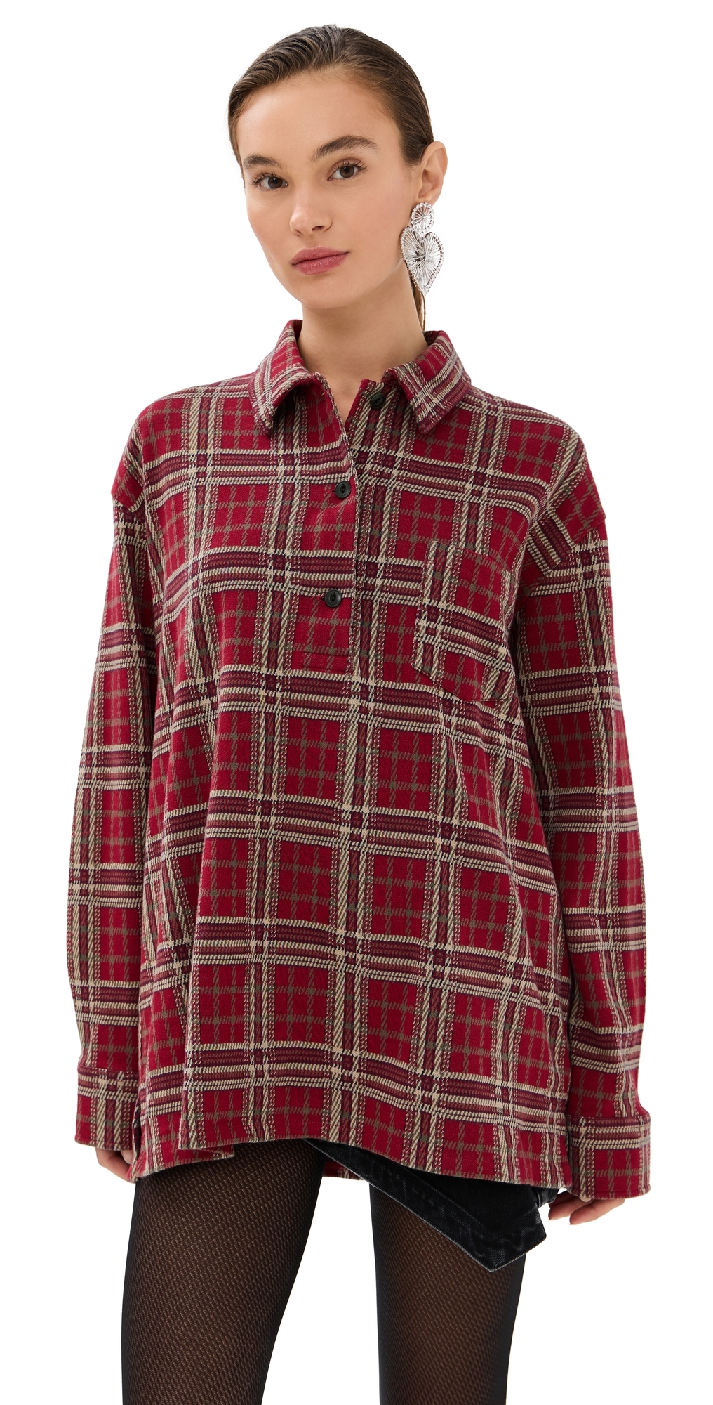 Fabric: Mid-weight stretch jersey. Plaid pattern. Split hem. Polo neckline. Long sleeves with button cuffs. Partial button placket. Patch breast pocket. Shell: 100% cotton. Hand wash. Made in Portugal. Measurements: Measurements from size 34 Length: 28in / 71.0cm, from shoulder