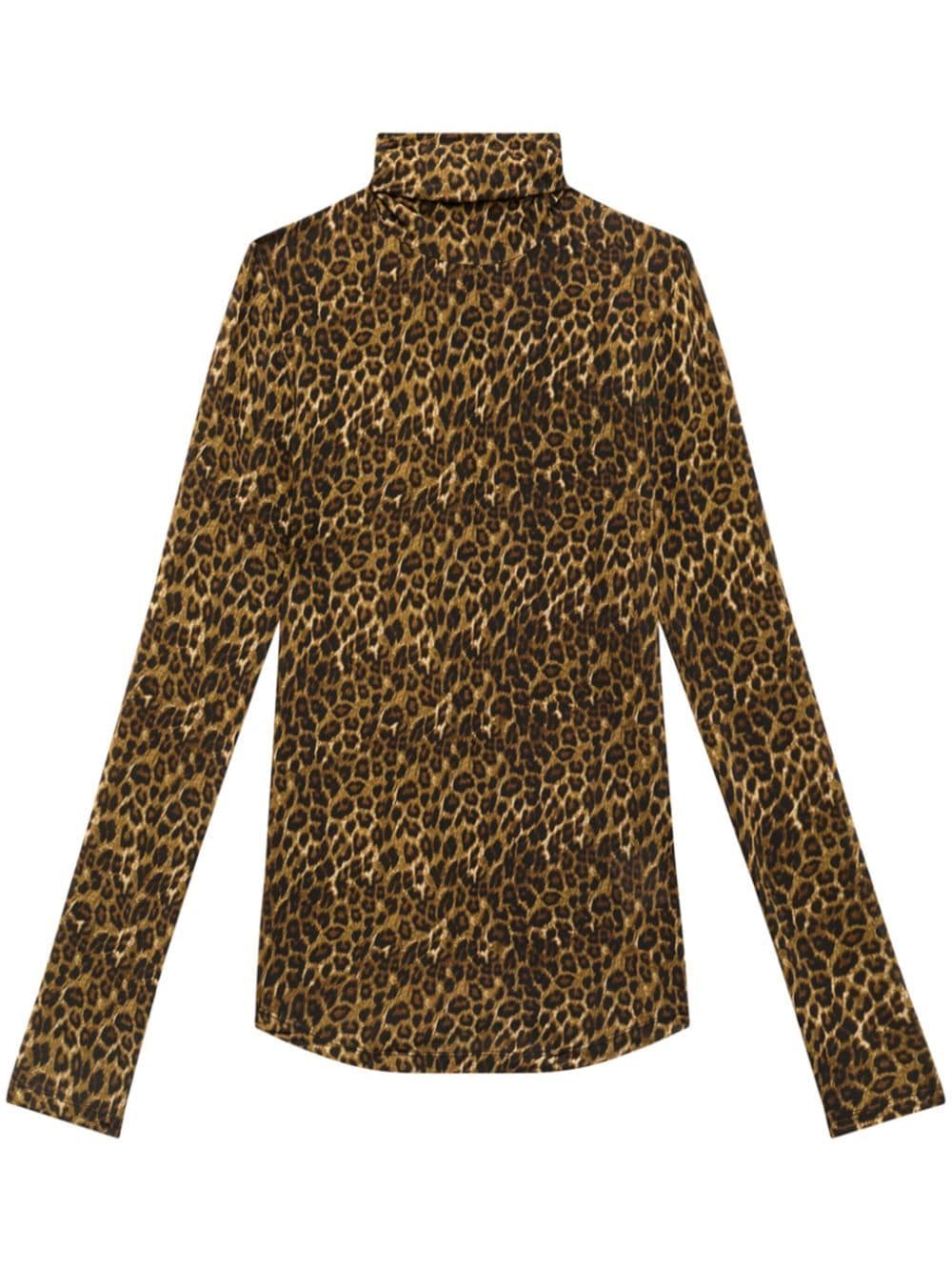 animalier brown animal print stretch-design roll neck long sleeves straight hem