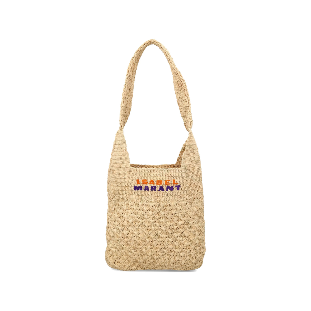 beige raffia embroidered lettering top handle
