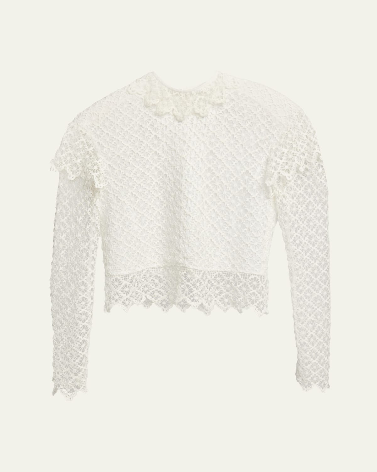 Isabel Marant "Ludivine" top is designed in an intricate diamondpatterned floral lace and finished with scalloped edges and self ruffles Mock neckline Long sleeves Slim fit Buttoned back Cotton Dry clean Imported