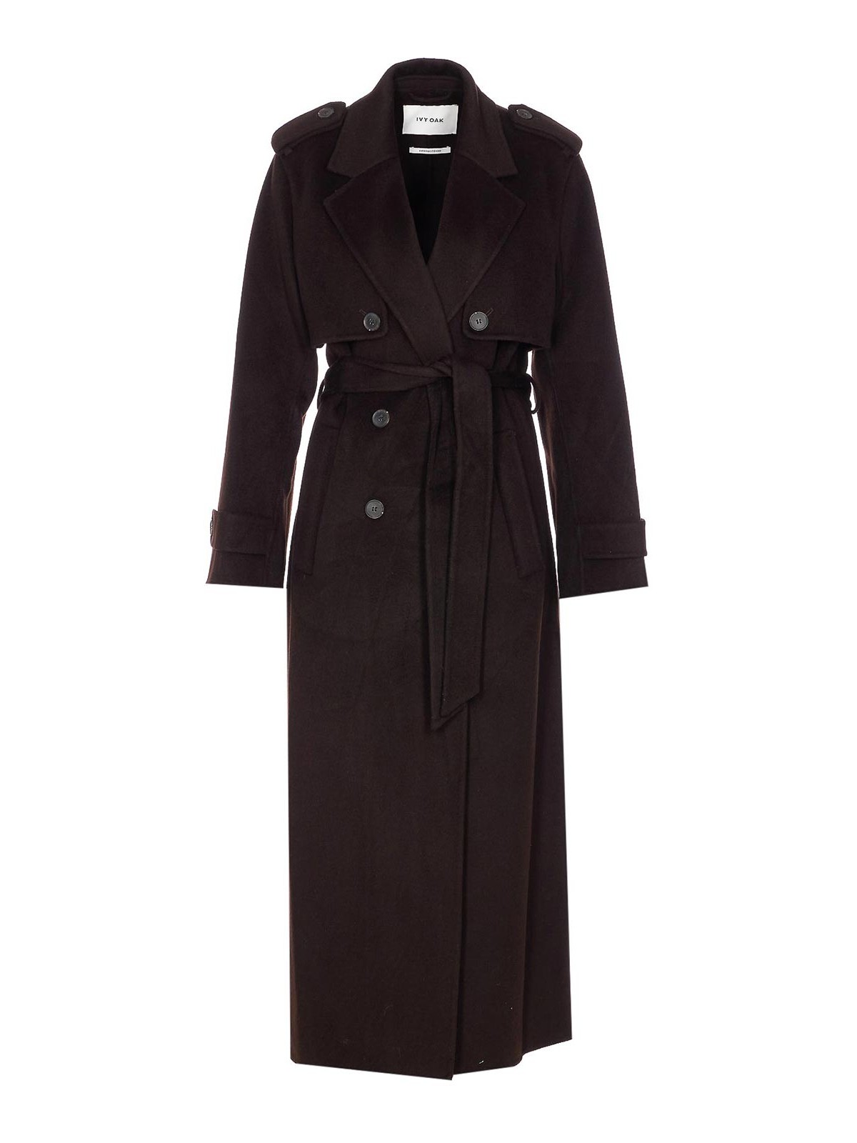 Manteau colette marron Ivy & Oak avec double boutonnage, ceinture à la taille, manches longues, languettes sur les épaules fendues dans le dos, modèle long Nom de la couleur du créateur: marron
