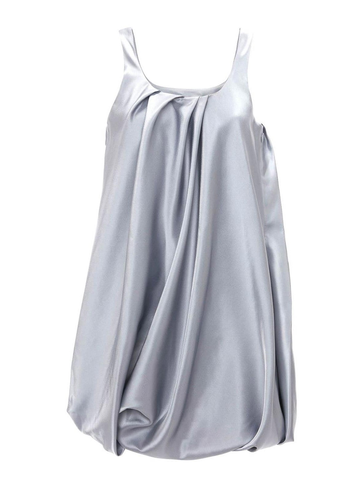 Détails plissés gris, col rond, fines bretelles, fermeture éclair latérale, ourlet bouffant