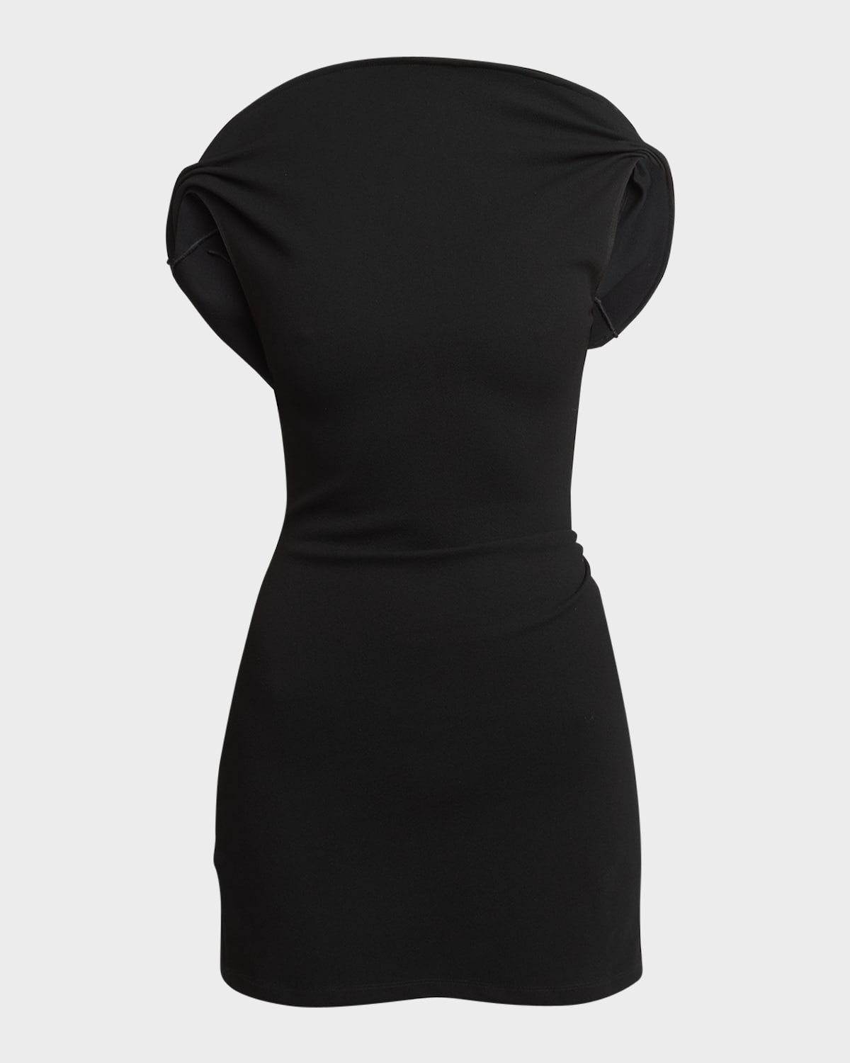 Jacquemus "Bordo" dress featuring a structured neck detail and a low back High neckline Sleeveless Bodyconscious silhouette Mini length Hidden closure Viscose/nylon/polyamide/elastane Made in France