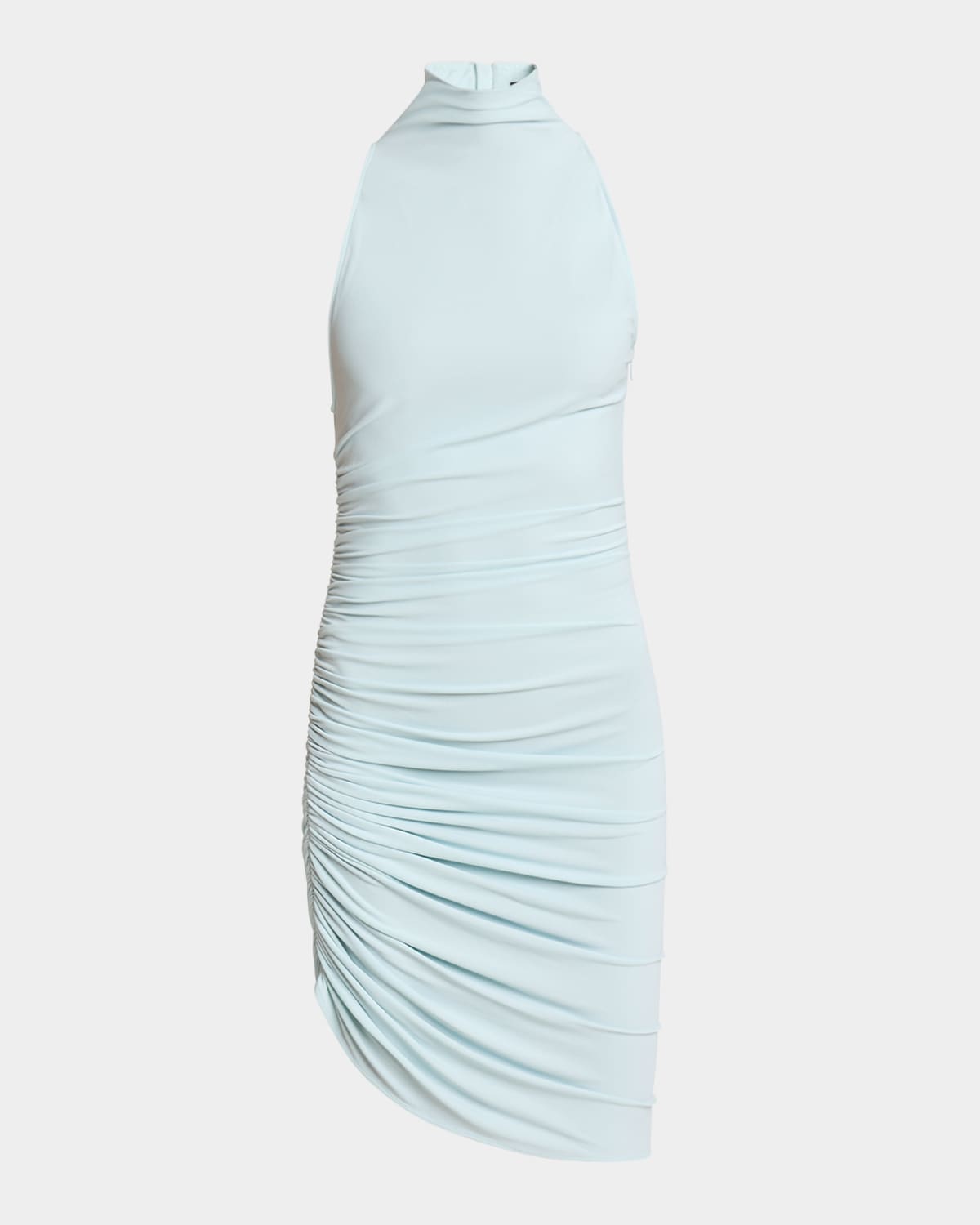 Jacquemus dress in an asymmetric gathered construction Turtleneck Sleeveless Bodycon fit Hem falls above the knee Back hookandeye closures Acetate/nylon/polyamide/elastane Made in Portugal