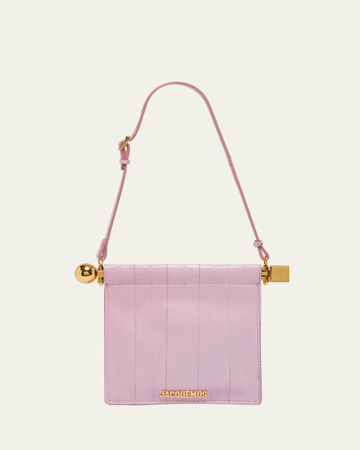 Jacquemus "Le Porte Rond" shoulder bag in hagfish leather and cotton Adjustable shoulder strap Structured top with metal hardware Lining: Cotton Approx. 6.5"H x 6.5"W x 0.4"D Made in Italy