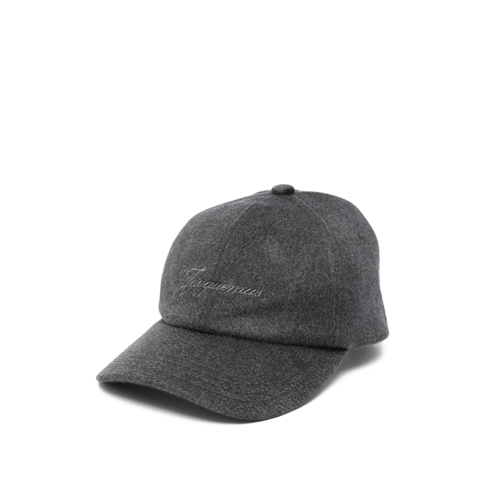 dark grey wool felt curved brim embroidered logo adjustable buckle fastening