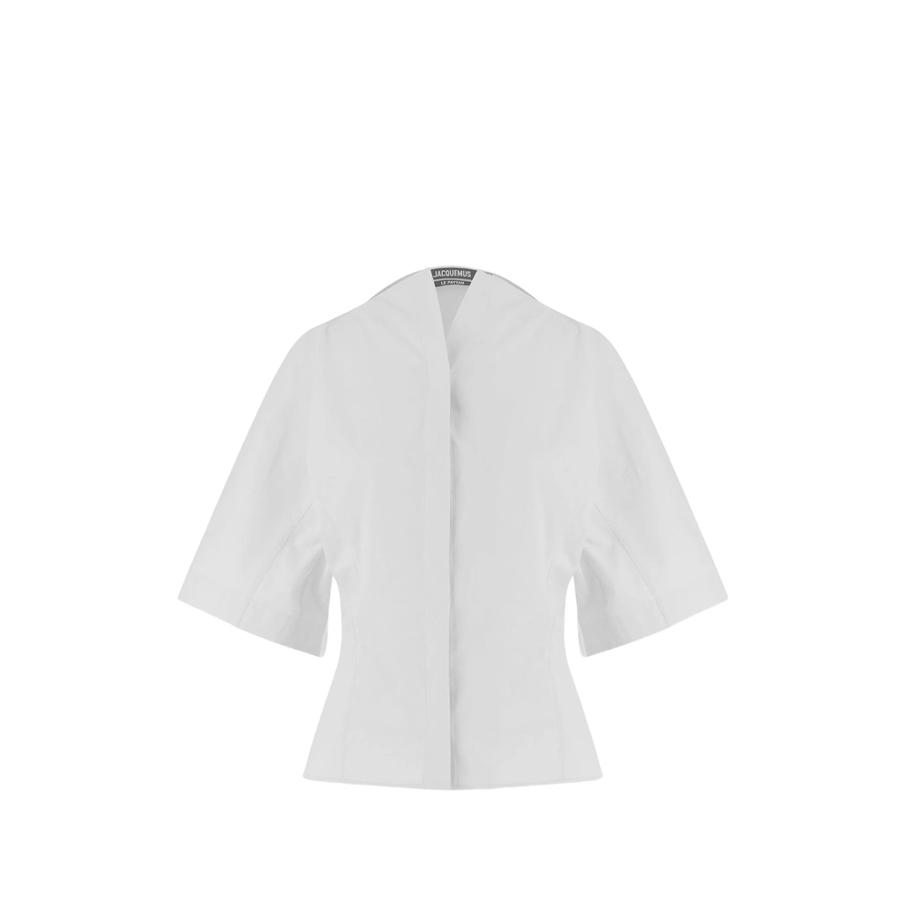 white cotton concealed button placket short sleeves boat neckline