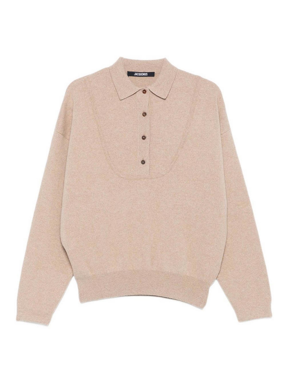 Patte de boutonnage beige à col polo et manches longues, mélange