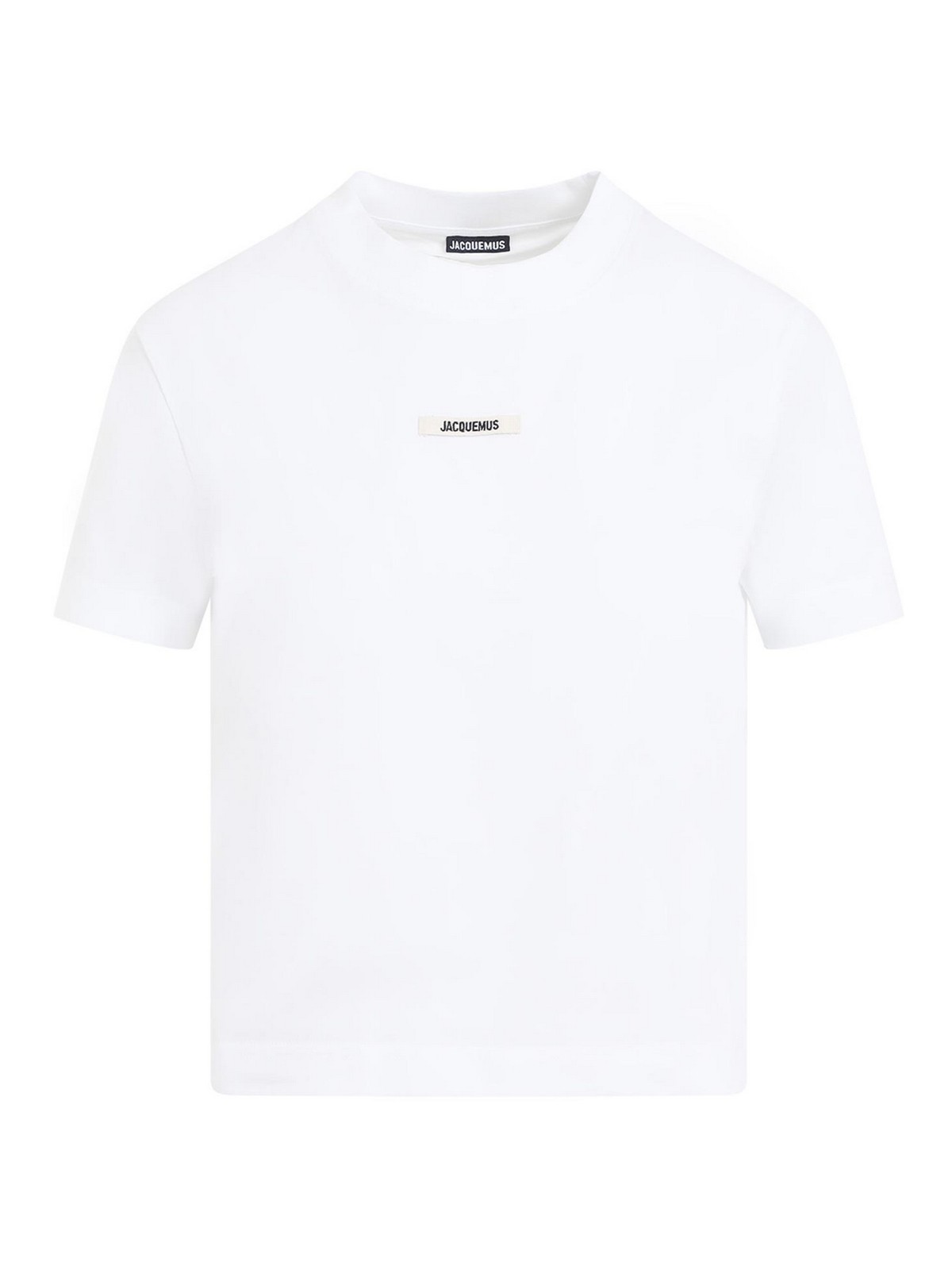 T-shirt Jacquemus le gros grain en coton blanc. coton mélangé blanc, encolure ras du cou, manches courtes, ourlet droit. couleur unie noire, coupe classique.