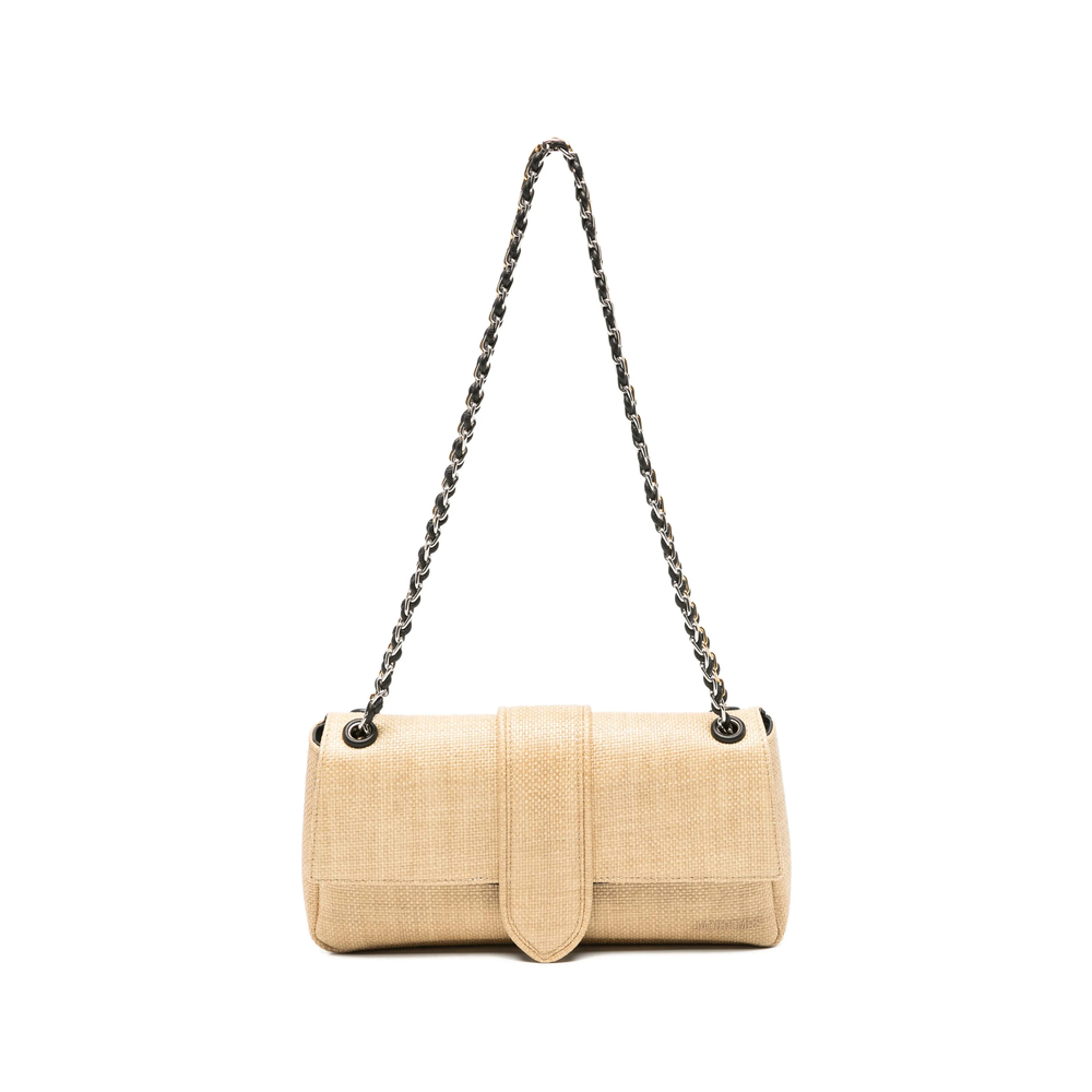 neutrals chain-link shoulder strap foldover top magnetic fastening This piece comes complete with a protective dust bag.