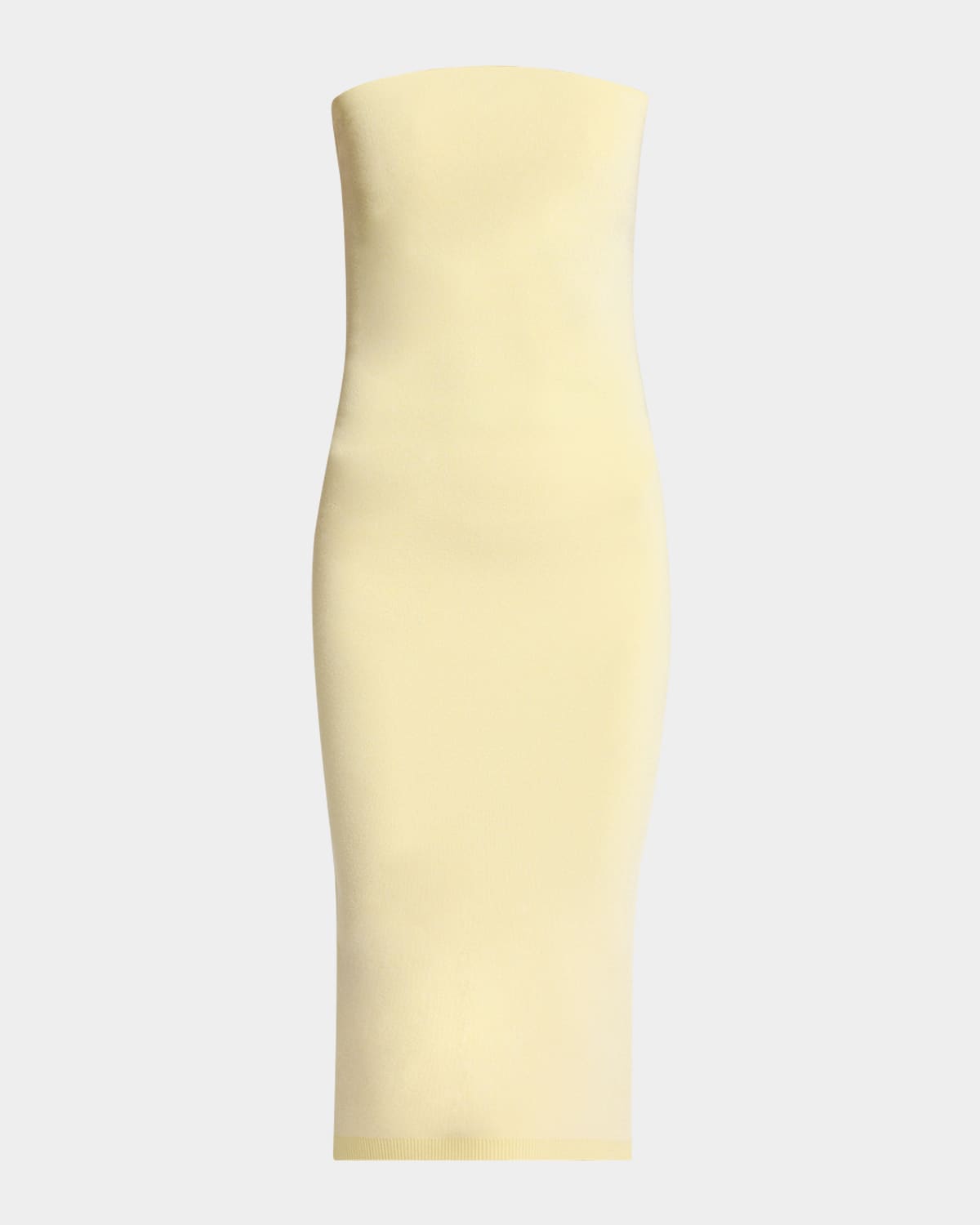 Jacquemus knit midi dress with button detailing Strapless neckline Sleeveless Bodycon silhouette Hem hits around the knee Back closure Viscose/polyester Imported