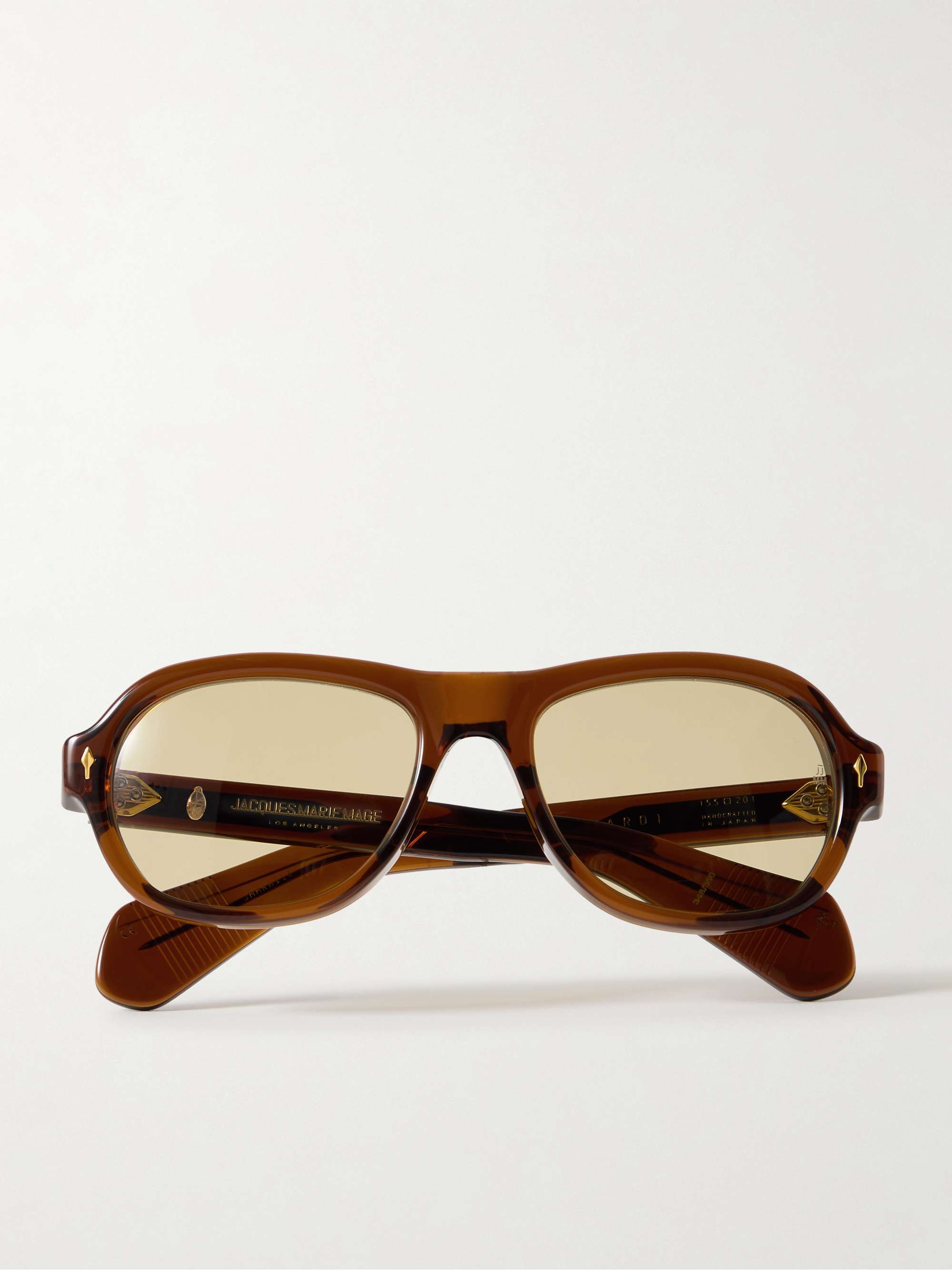 Jacques Marie Mage's 'Richard' sunglasses are a modern interpretation of a classic aviator style. They've been handcrafted in Japan from acetate and feature the signature gold-tone arrowhead pins and 'Spatula' temple details.