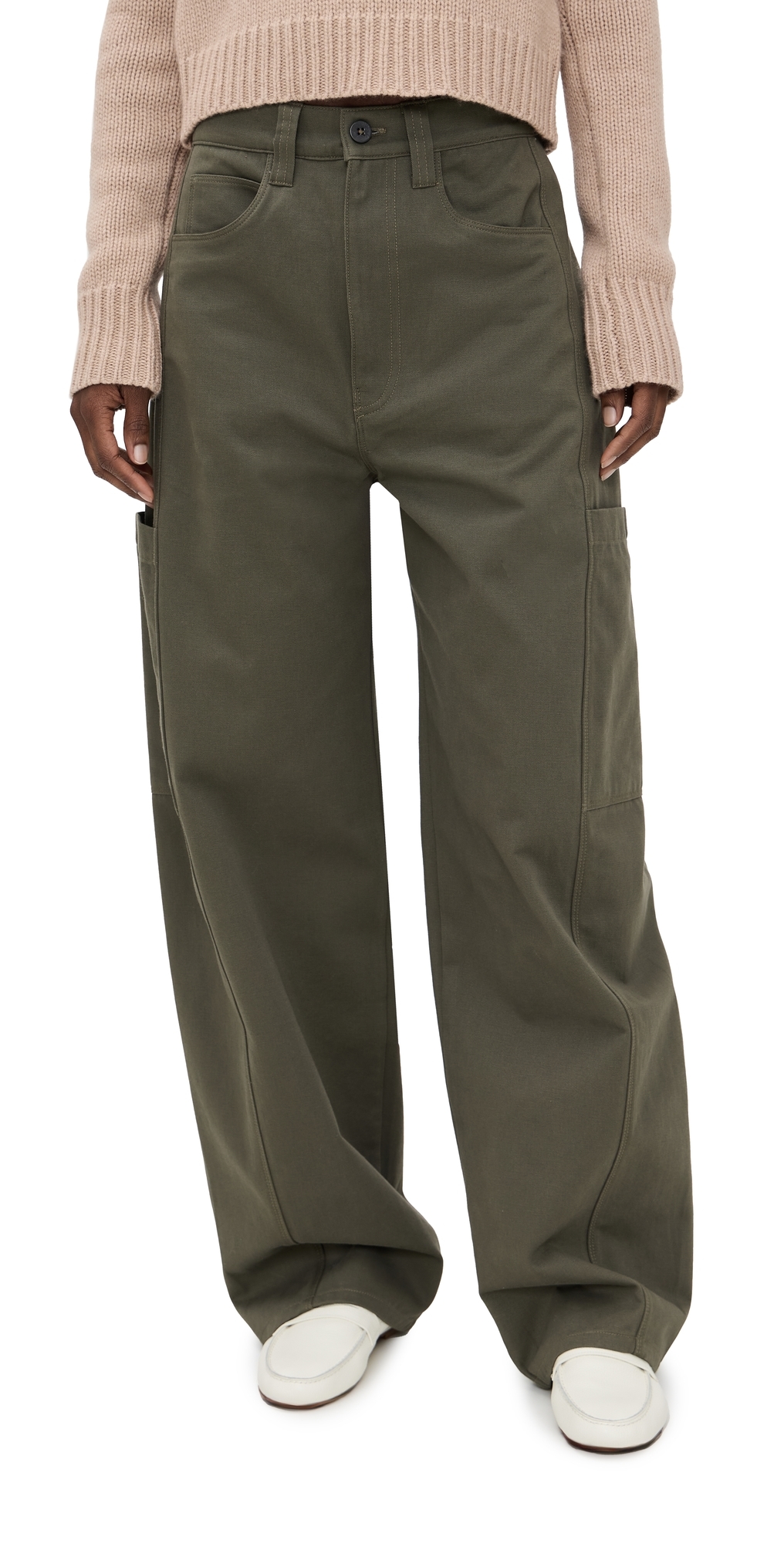 Fabric: Mid-weight, non-stretch twill. Button closure and zip fly. 5-pocket styling. Cargo pockets. Shell: 100% cotton. Wash cold. Made in the USA. Measurements: Measurements from size 2 Rise: 13in / 33cm Inseam: 31in / 79cm Leg opening: 19in / 48cm