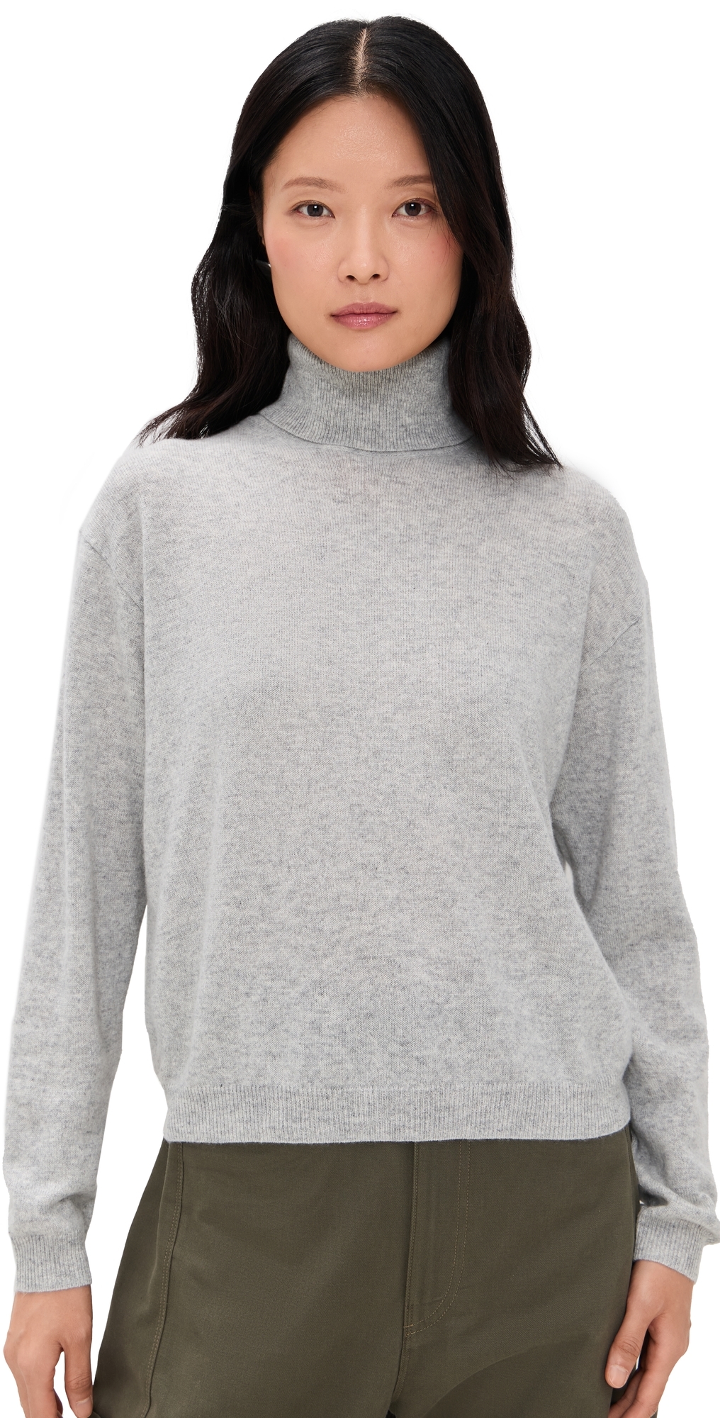 Fabric: Lightweight heathered knit with stretch. Ribbed trim. Turtleneck. Long sleeves with dropped shoulders. Shell: 100% cashmere. Dry clean. Imported, China. Measurements: Measurements from size S Length: 22in / 56.0cm, from shoulder