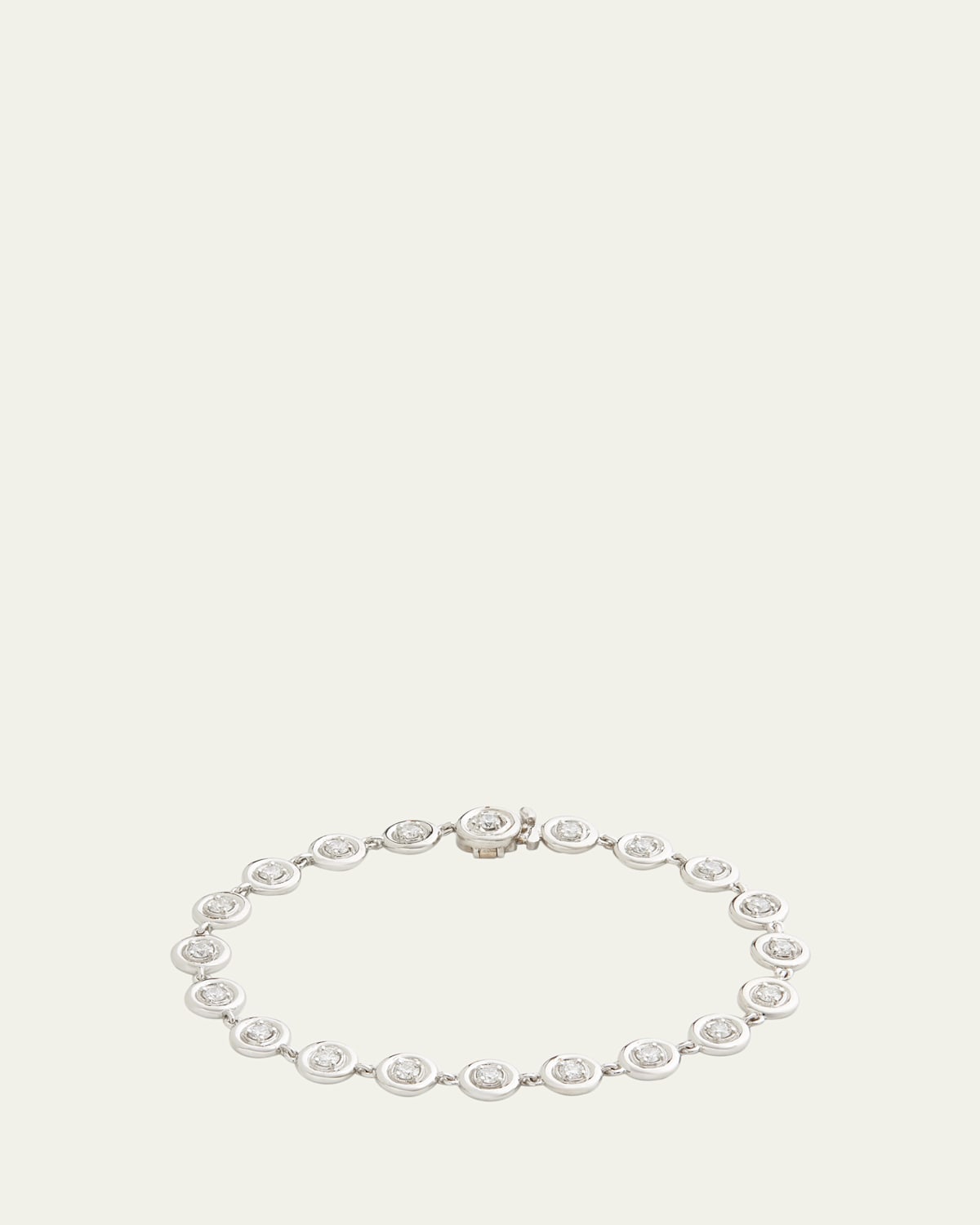 Jamie Wolf links brilliant diamonds surrounded by domed settings to create a dotted pattern for the wrist. Even the clasp, integrated to match the rest of the bracelet, is set with a sparkling diamond. Approx. 7" length Polished 18karat white gold 1.14 total diamond carat weight Pushlock closure Made in USA