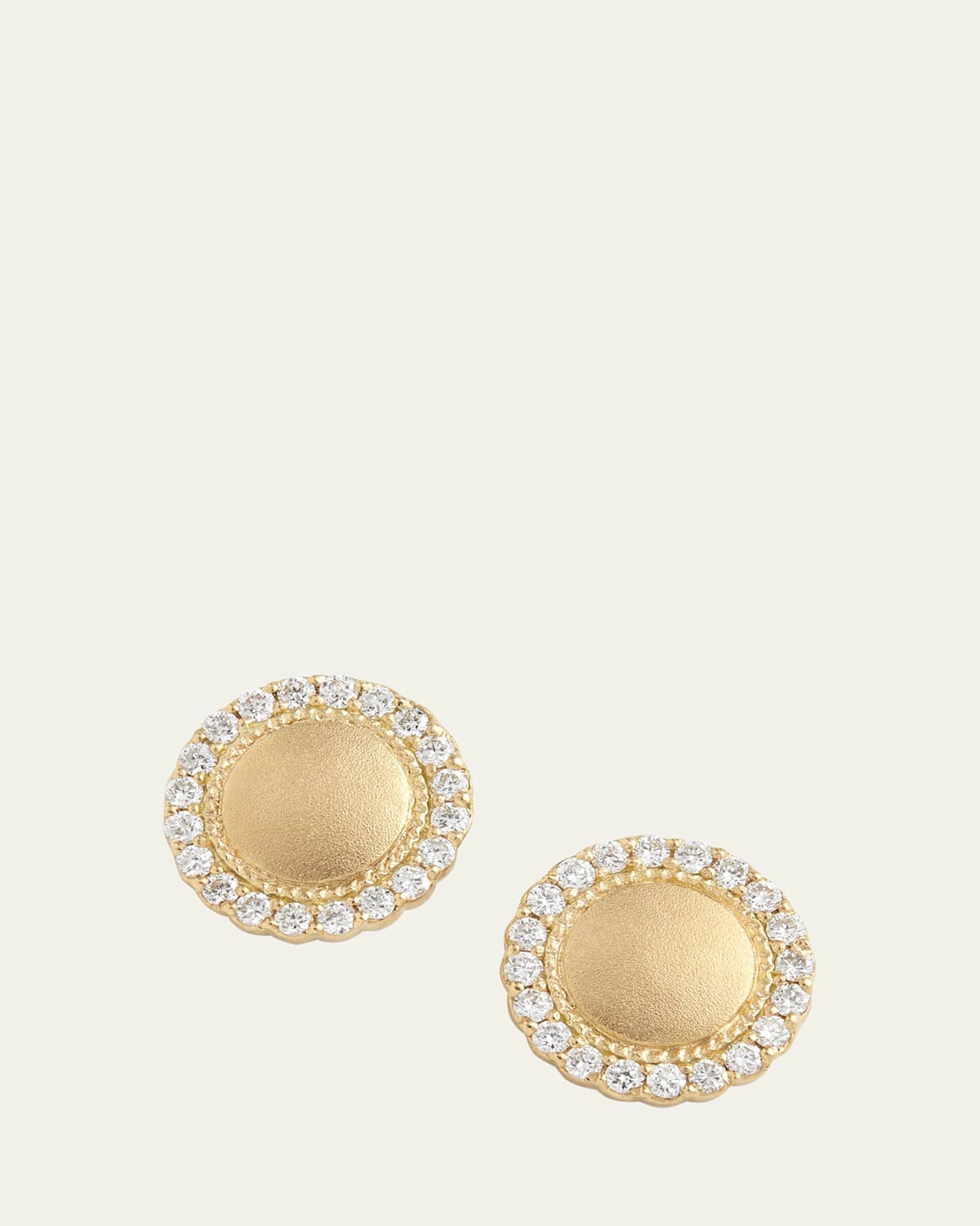 Jamie Wolf earrings 18karat yellow gold White diamond halos Total carat weight: 0.26 For pierced ears Made in USA