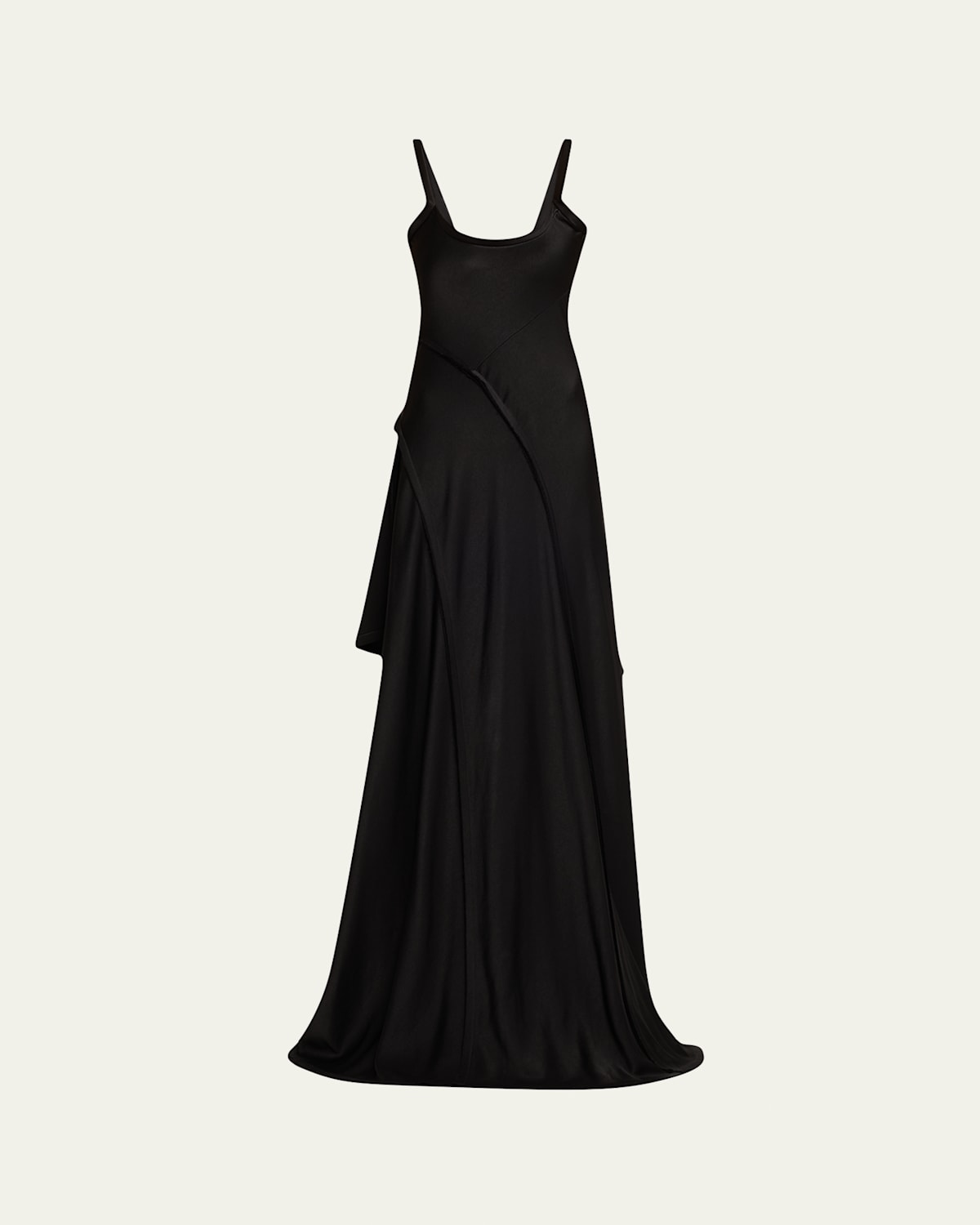 Jason Wu Collection crepe back satin bias slip gown featuring tiered seaming detail and an arched side slit Scoop neckline Sleeveless Aline silhouette Floor sweeping hem Arched side slit Side zip Acetate/viscose Dry clean Imported