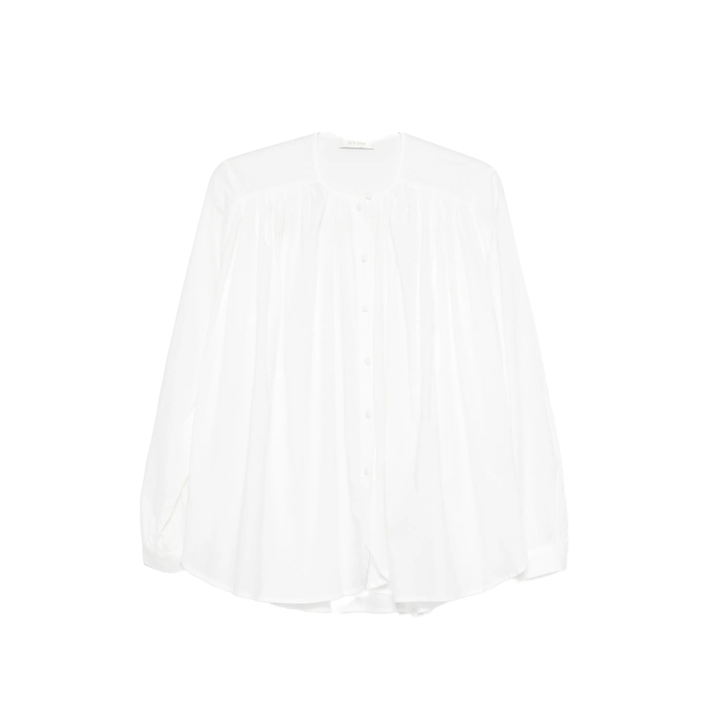 off white button fastening gathered detail long sleeves round neck relaxed fit