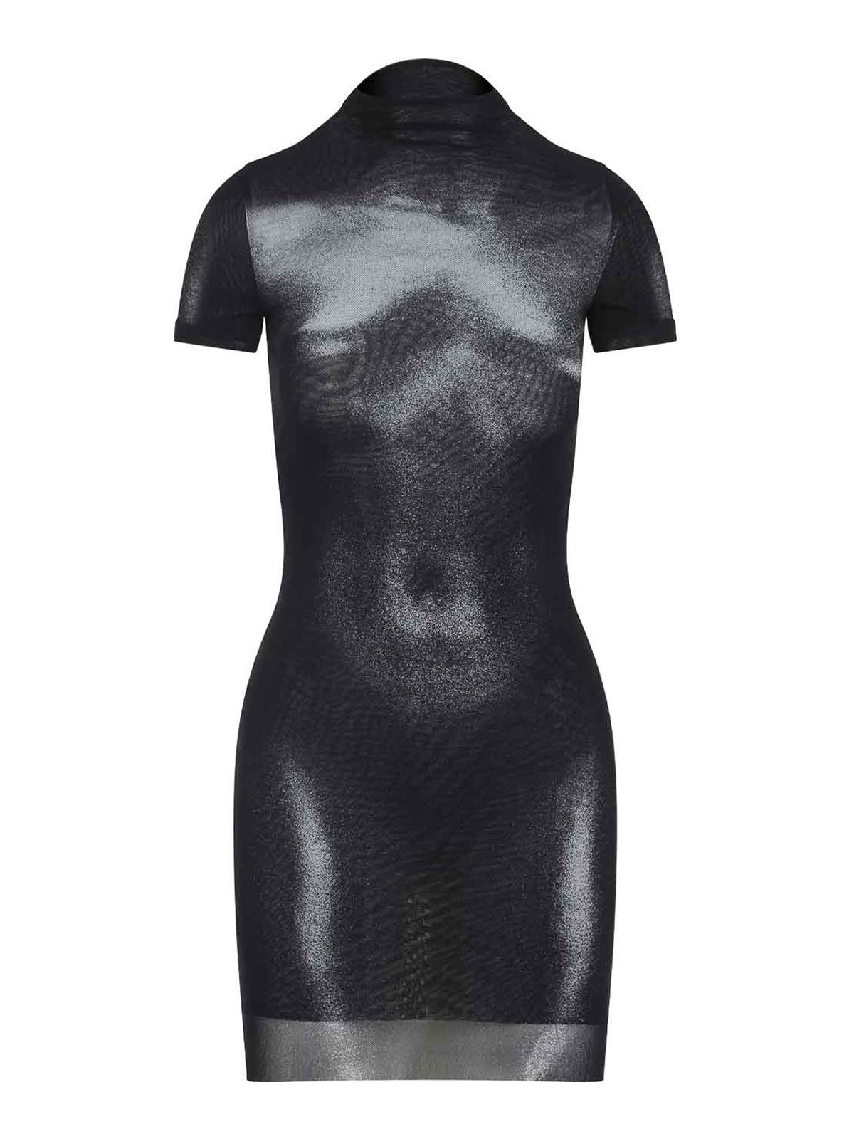 Mini-robe noire Body Dust de Jean Paul Gaultier en maille noire, entièrement teintée, imprimé graphique, col montant, manches courtes, ourlet droit, coupe ajustée