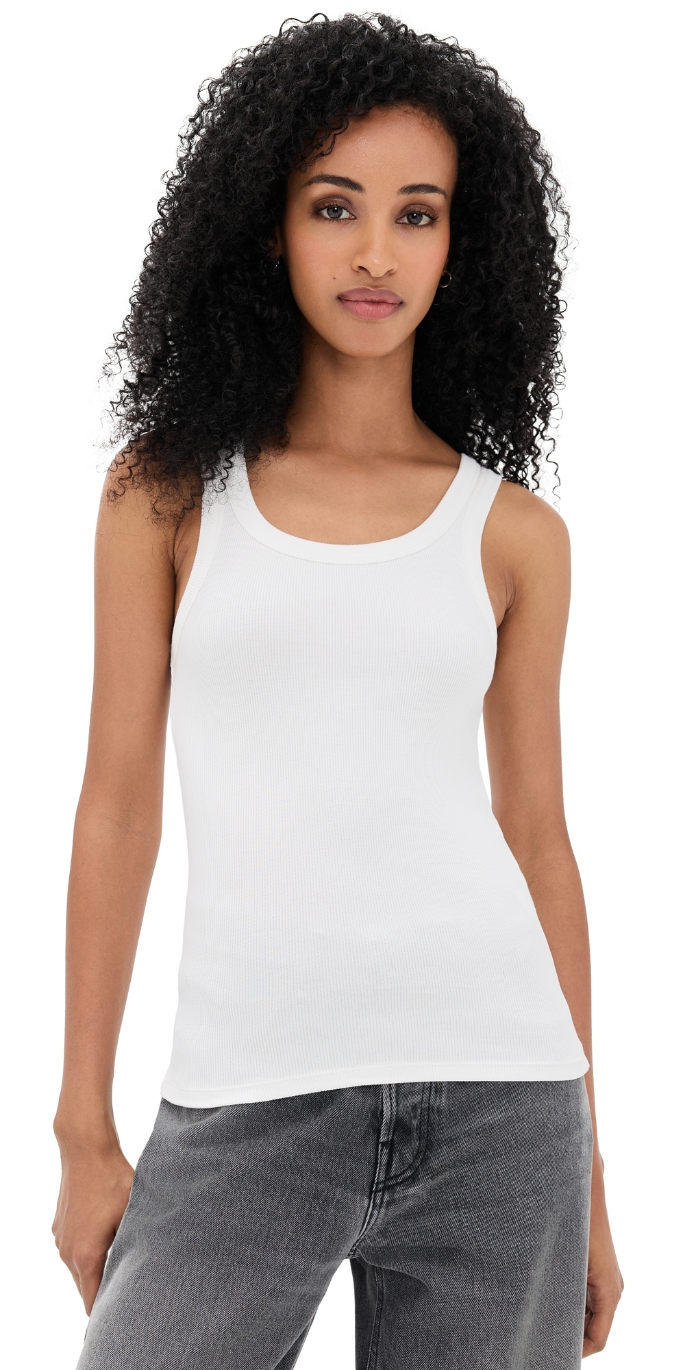 Fabric: Lightweight, super-stretch ribbed knit. Scoop neck. Sleeveless. Shell: 95% cotton/5% elastane. Wash cold. Made in Portugal. Measurements: Measurements from size XS Length: 22.5in / 57.0cm, from shoulder