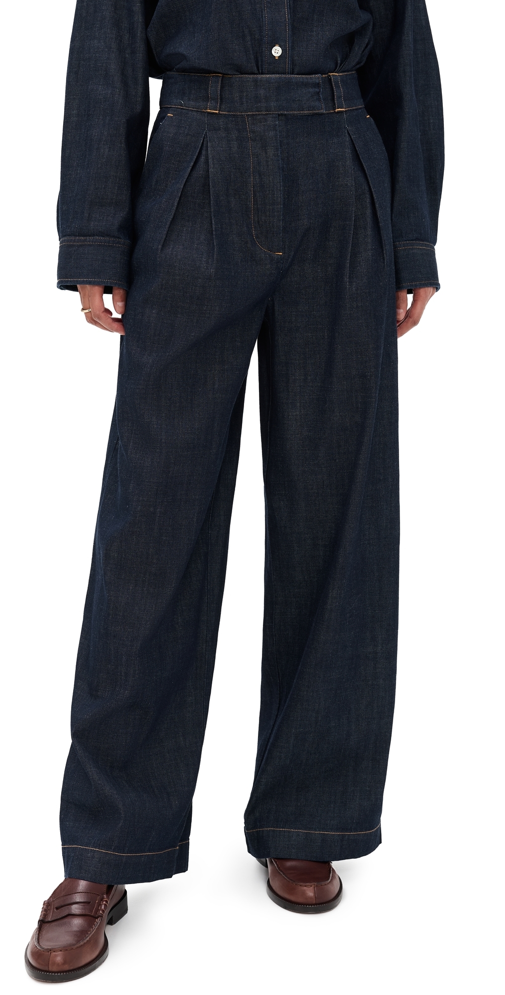 Fabric: Lightweight, non-stretch denim. Pleated waist. Hook-and-eye closures at waist, zip fly. Slant hip pockets and welt back pockets. Shell: 100% cotton. Hand wash. Imported, China. Measurements: Measurements from size 0 Rise: 13in / 33cm Inseam: 30.25in / 77cm Leg opening: 23.5in / 60cm