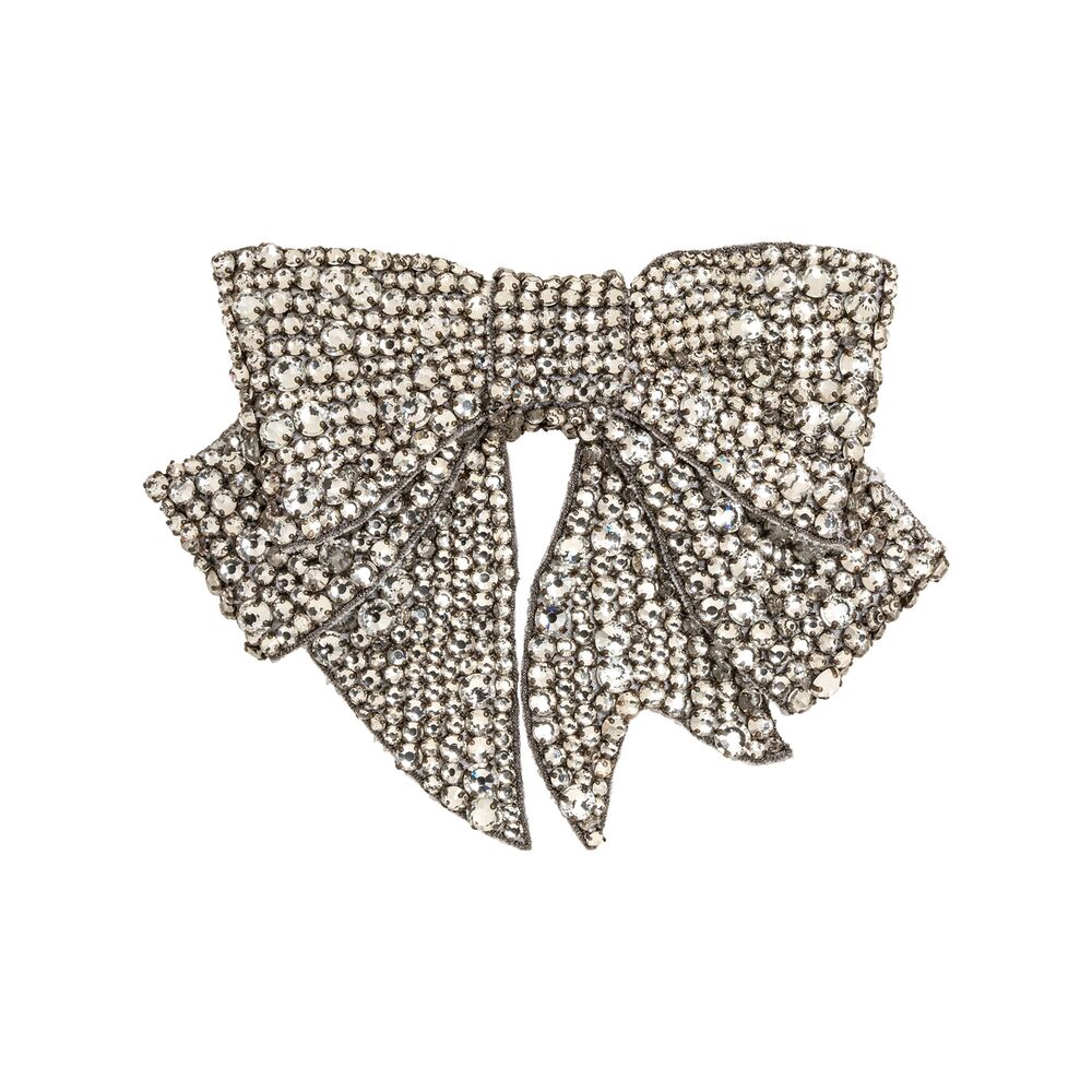 silver-tone stainless steel satin weave oversize bow detail glass crystal embellishment