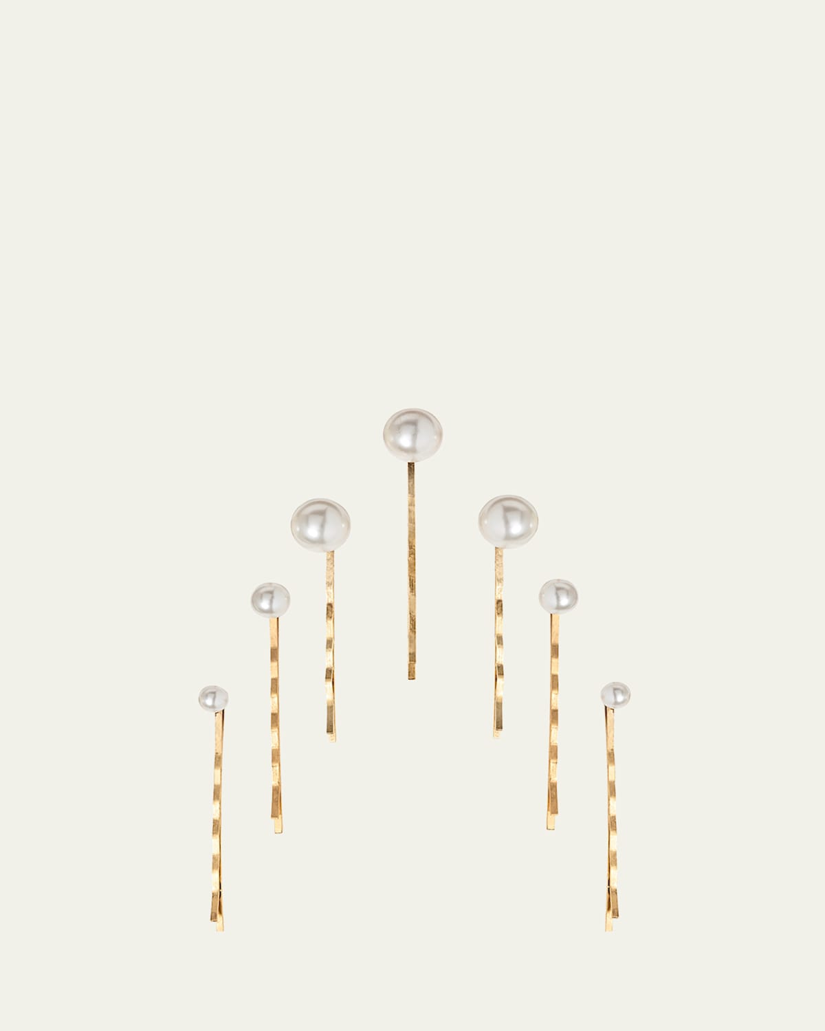 Jennifer Behr "Perla" set of seven bobby pins. Swarovski® simulated glass pearls. Golden hardware. Approx. 3"L. Made in USA of imported materials.