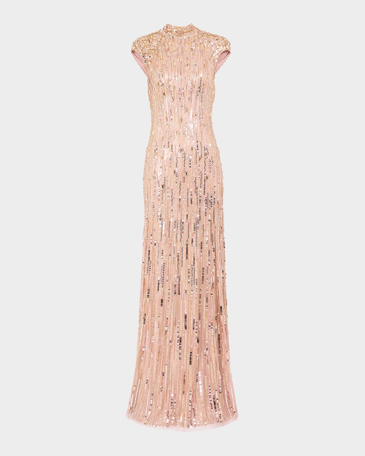 Ernest Crystal Sequined Cap-Sleeve Gown