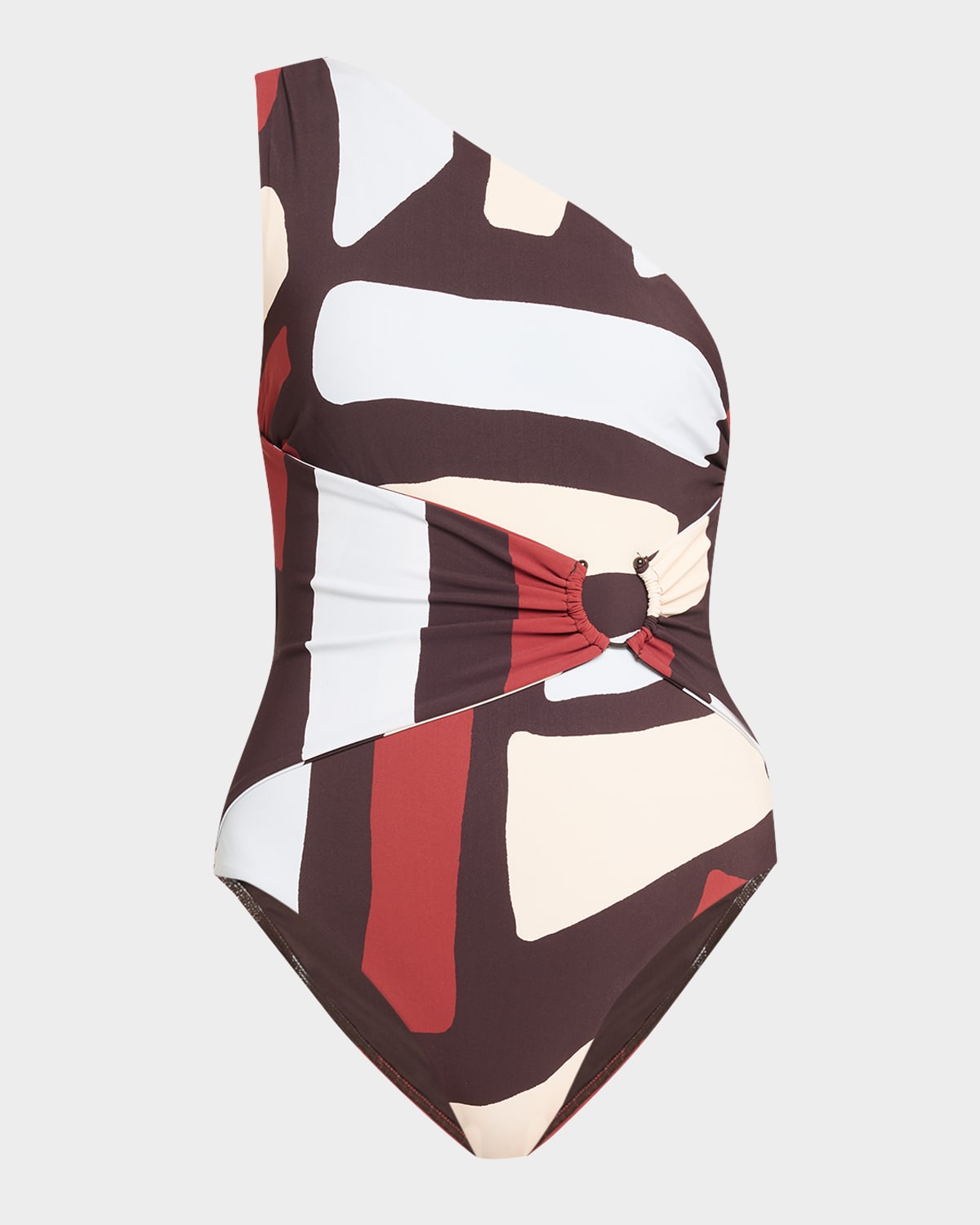 JETS Australia onepiece swimsuit features a belted waist with central ring hardware Oneshoulder neckline Moderate seat coverage Nylon/polyamide/elastane Hand wash Imported
