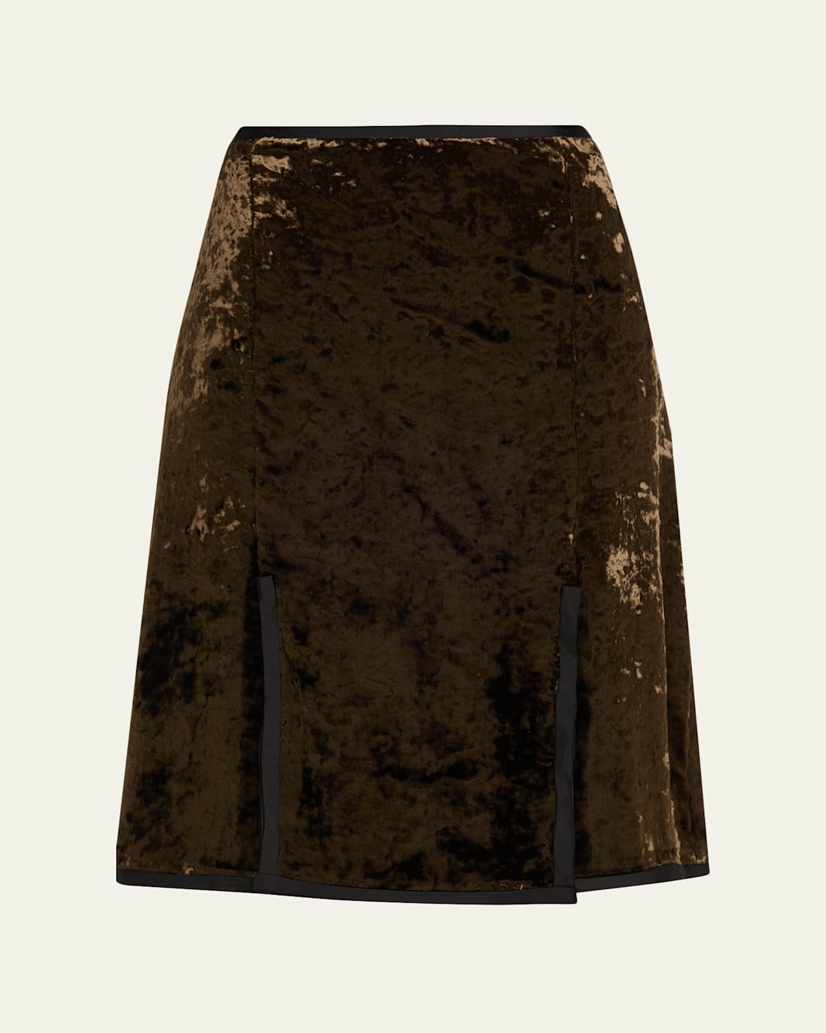 Jil Sander skirt finished in a crushed velvet with contrasttrimmed side slits High waist Knee length Skirt falls straight from hip to hem Side zip closure Slit Length (inches): 8 Proviscose® rayon/polyester Lining: Proviscose® rayon Dry clean Made in Italy