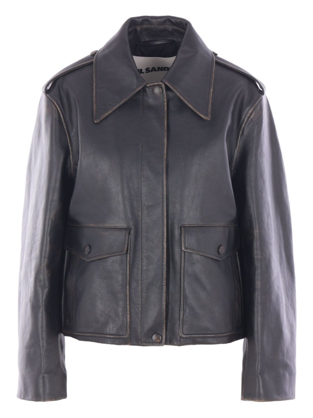 GAE FAUX LEATHER CROPPED BOMBER - CHARCOAL