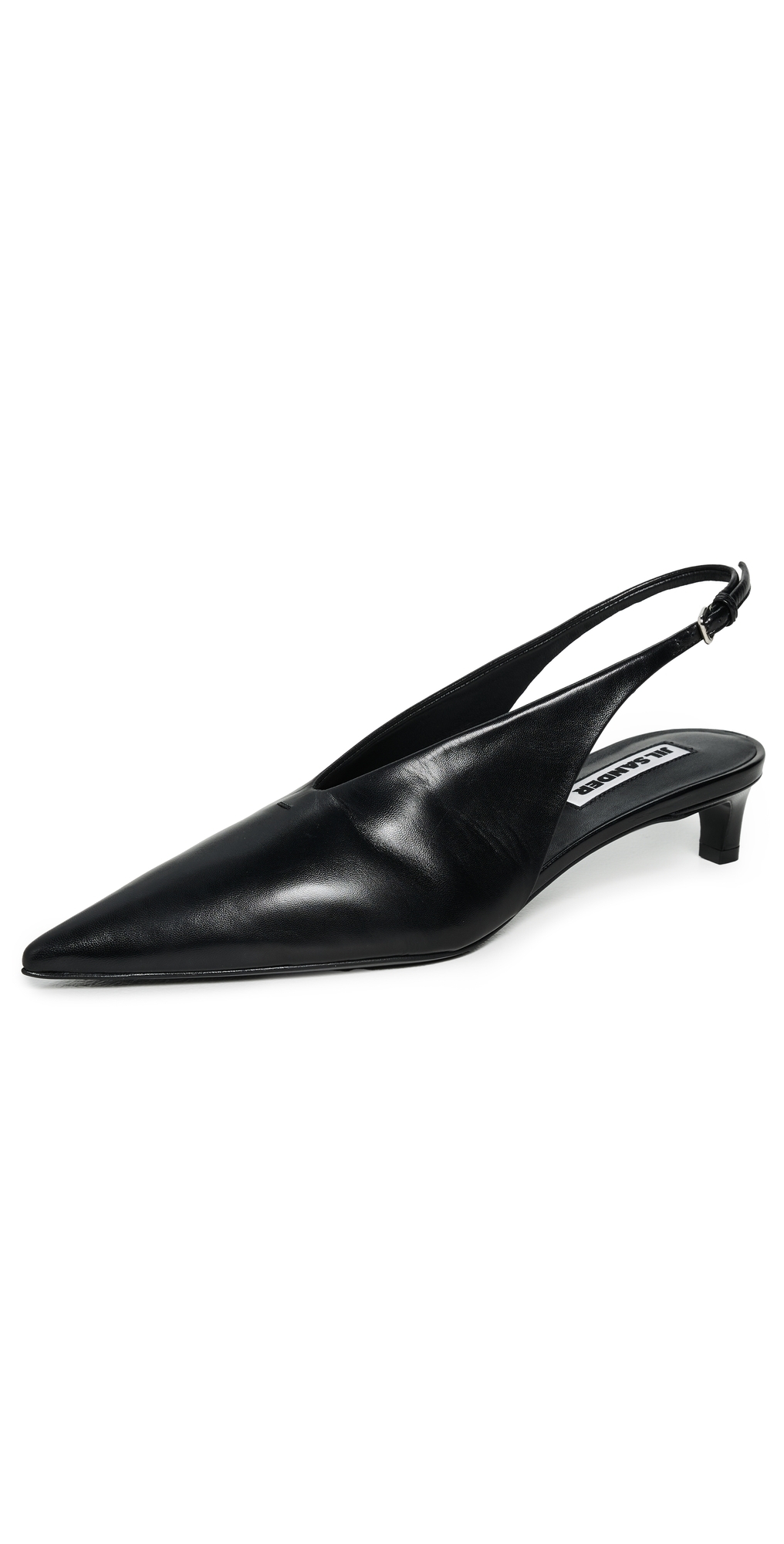 Upper: Goatskin. Adjustable slingback strap with buckle closure. Lining: Leather. Kitten heel. Slip on. Pointed toe. Rubber sole. Made in Italy. This item cannot be gift-boxed. Measurements: Heel: 1.75in / 45mm