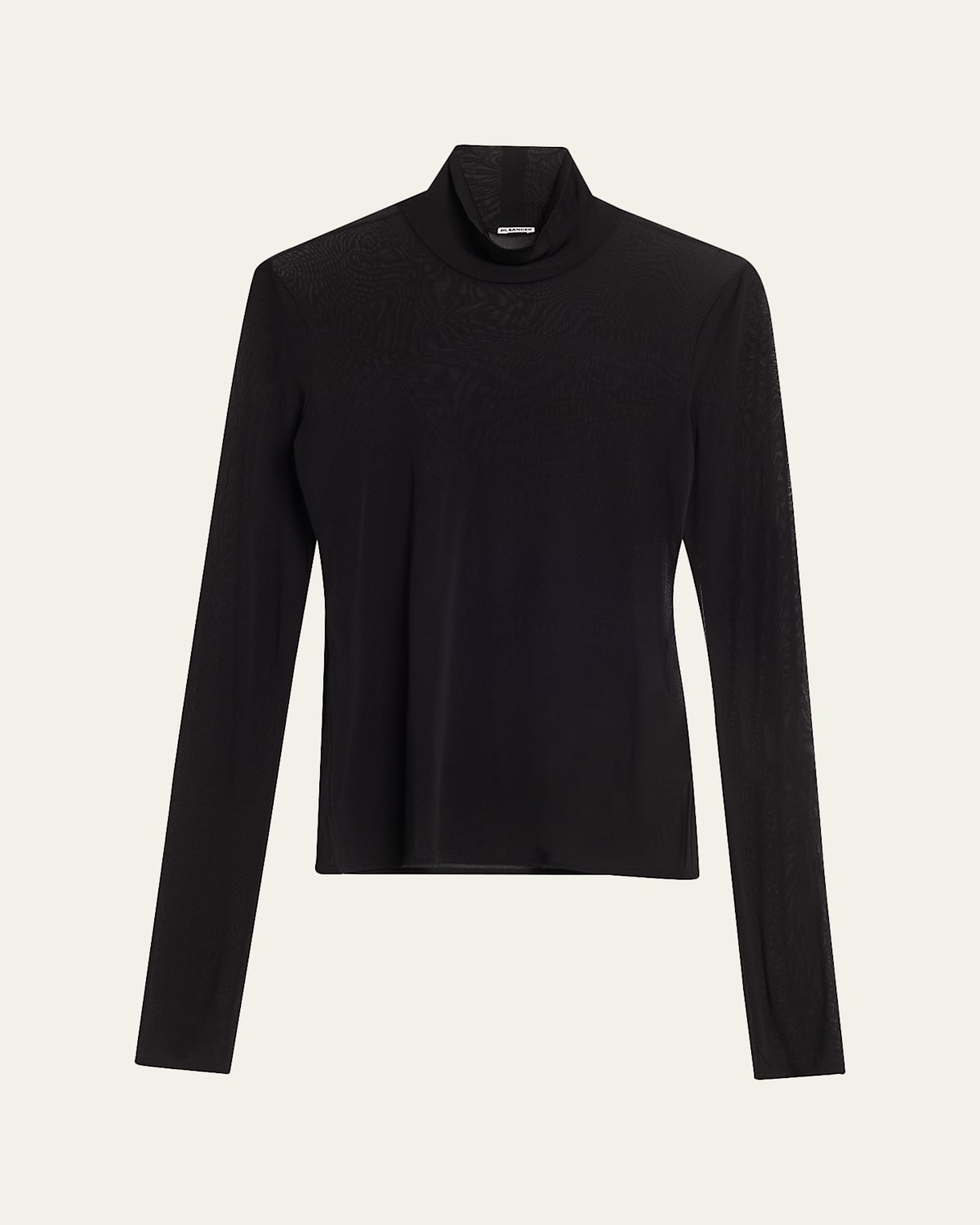 Jil Sander top is crafted of a sheer viscose Turtleneck Long sleeves Fitted Pullover style Viscose Dry clean Made in Italy