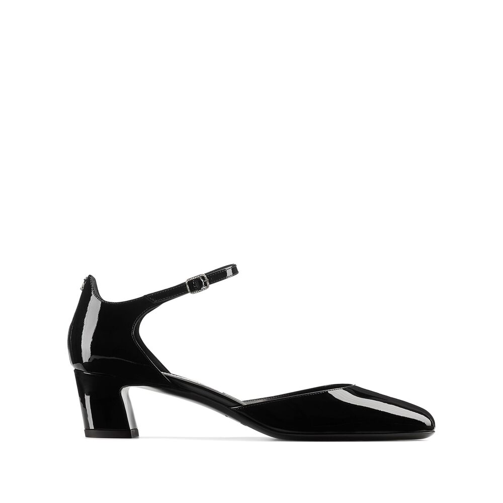 black calf leather patent finish buckle-fastening ankle strap 45mm low block heel square toe branded leather insole leather outsole