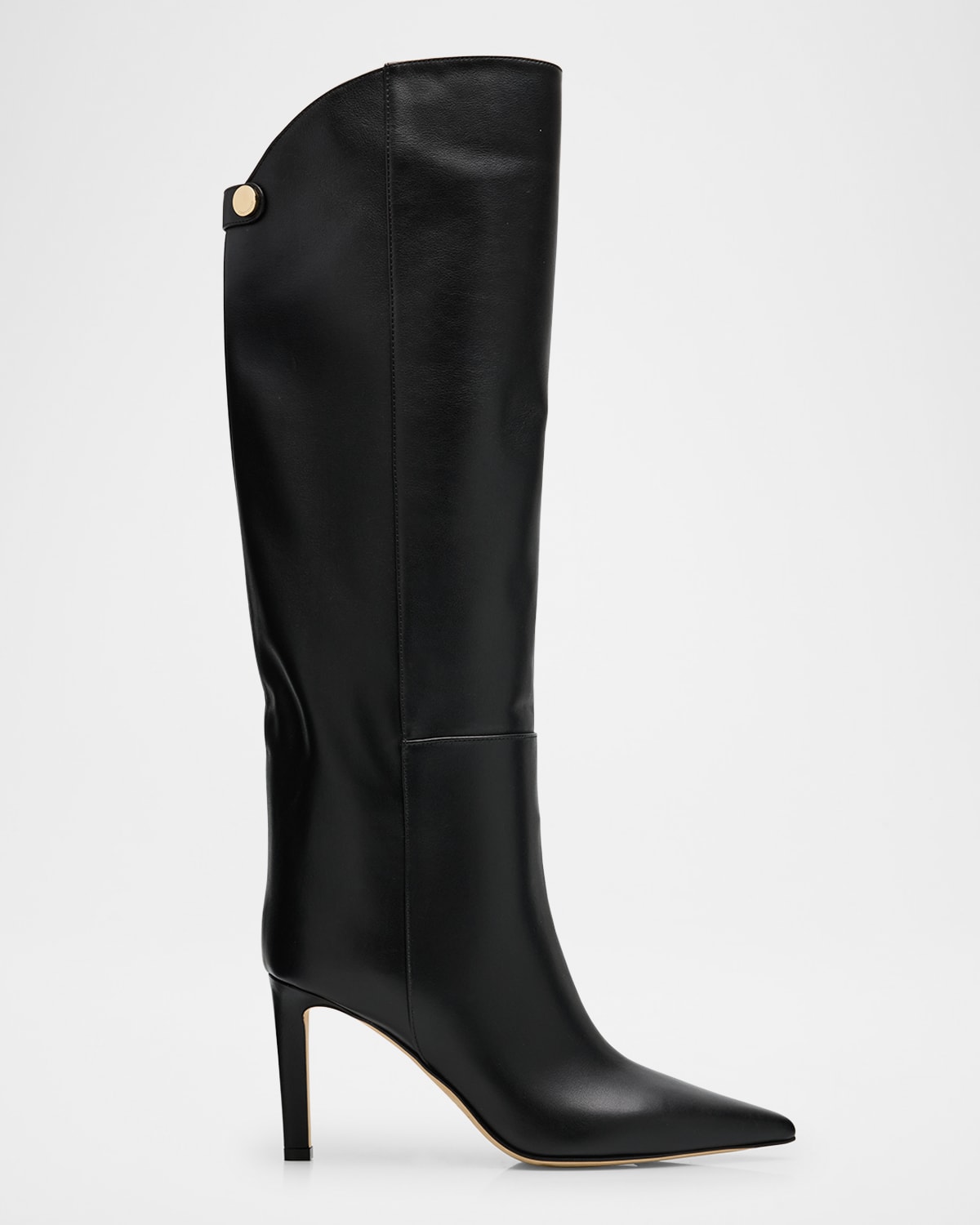 Jimmy Choo "Alizze" kneehigh boots in smooth goatskin leather 3.25 in / 85 mm stiletto heel Pointed toe Pullon style Made in Italy
