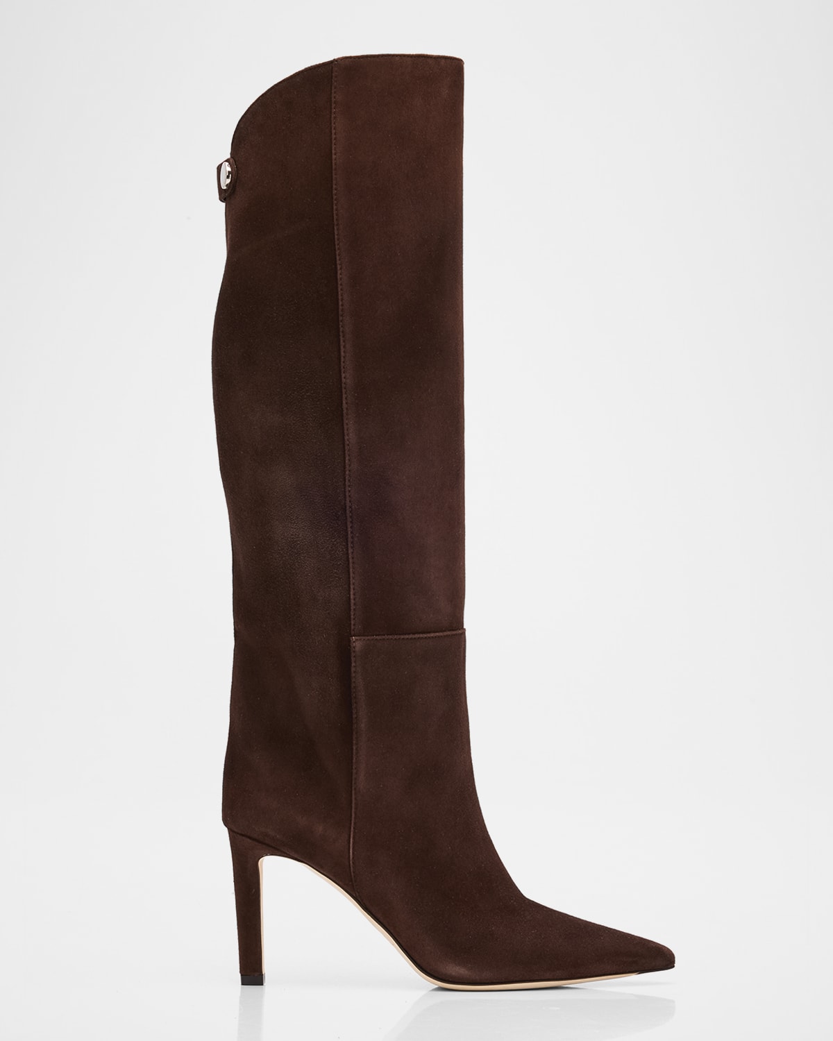 Jimmy Choo "Alizze" kneehigh boots in suede 3.25 in / 85 mm stiletto heel Pointed toe Pullon style Made in Italy
