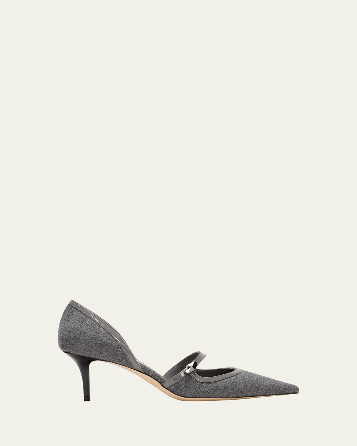 Jimmy Choo "Carolyn" cotton and patent leather pumps 2.36 in / 60 mm stiletto heel Pointed toe Midvamp button strap Leather outsole Lining: Leather Made in Italy