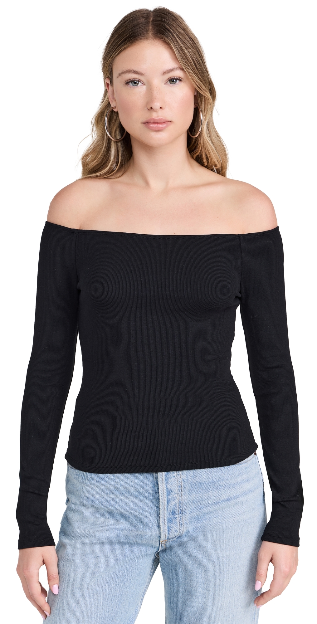 Fabric: Mid-weight ribbed knit. Off-shoulder neckline. Long sleeves. Shell: 56% cotton/38% modal/6% spandex. Hand wash. Imported, China. Measurements: Measurements from size S Length: 16.25in / 41.0cm, from center back