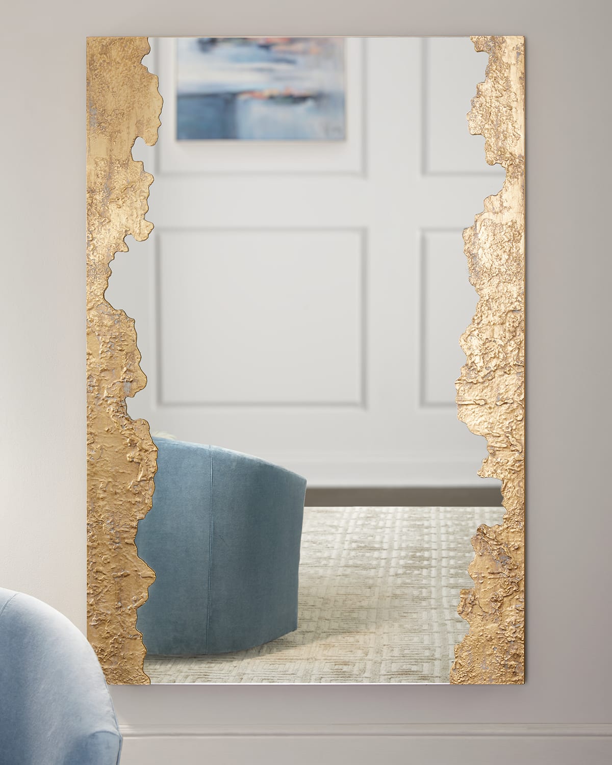 Handcrafted traditional mirror features side frames in molten relief texture Made of cast resin and wood composite French cleats are fitted Approx. 2"L x 68.0"W x 45.5"T Sold individually Includes hanging hardware Wipe clean Imported Weight, 157.0lbs Boxed weight, approximately 325.0lbs